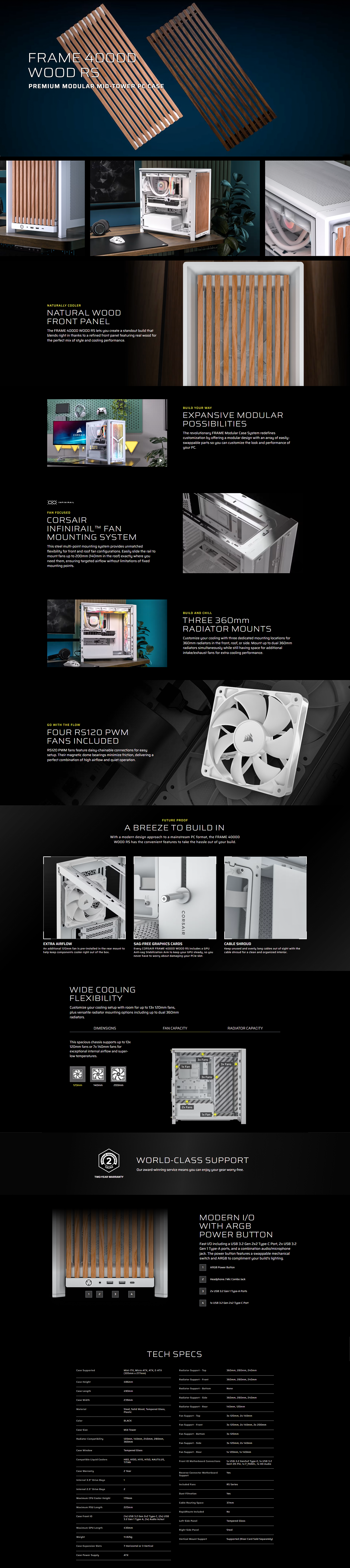 • CORSAIR FRAME 4000D WOOD RS White CORSAIR FRAME 4000D WOOD RS White