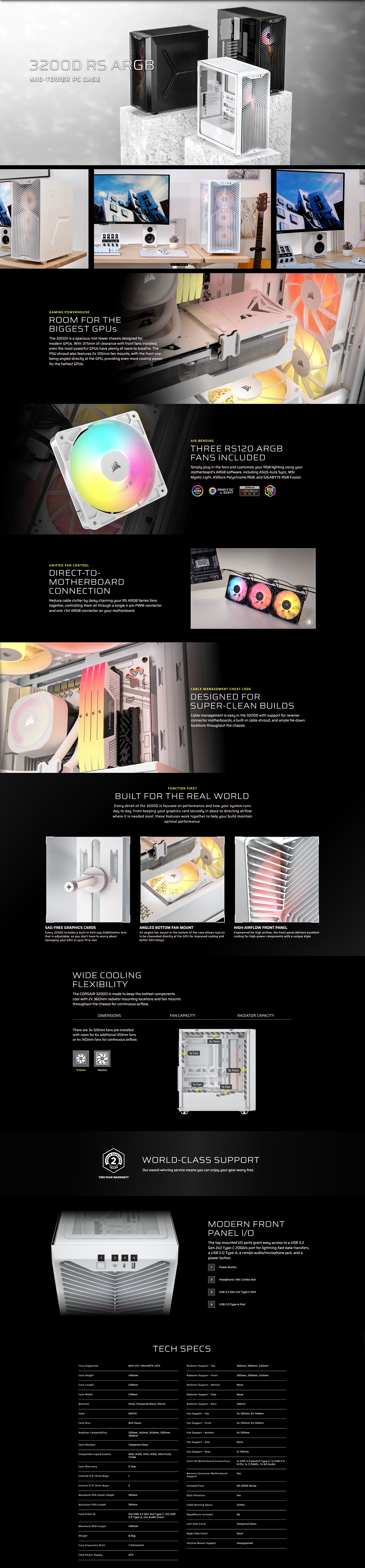CORSAIR 3200D RS ARGB Window Mid Tower White (CC-9011345-WW)