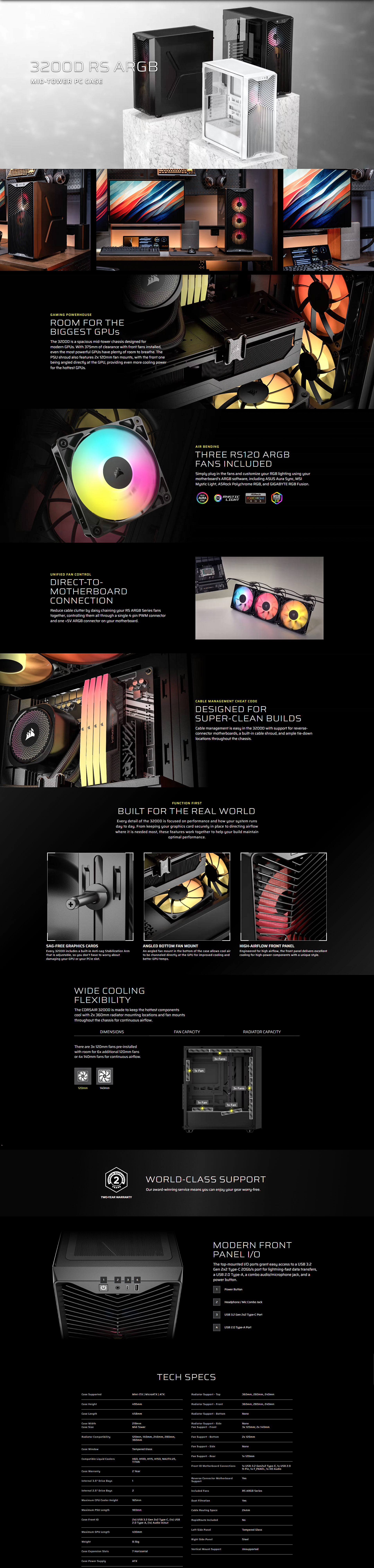 CORSAIR 3200D RS ARGB Window Mid Tower Smoke (CC-9011346-WW)