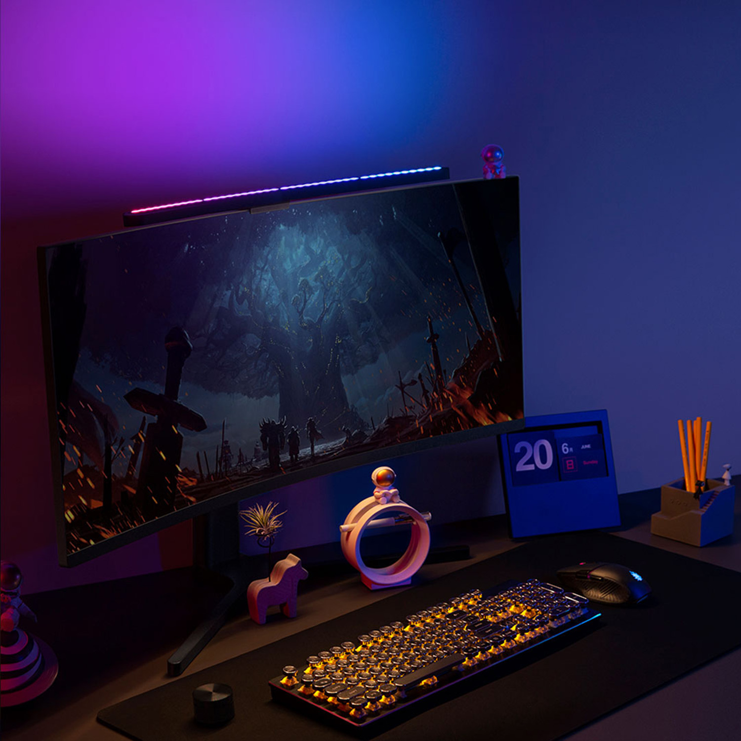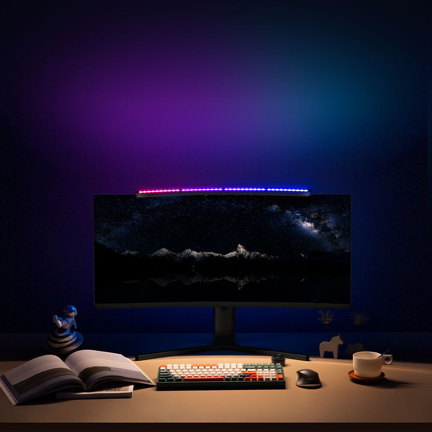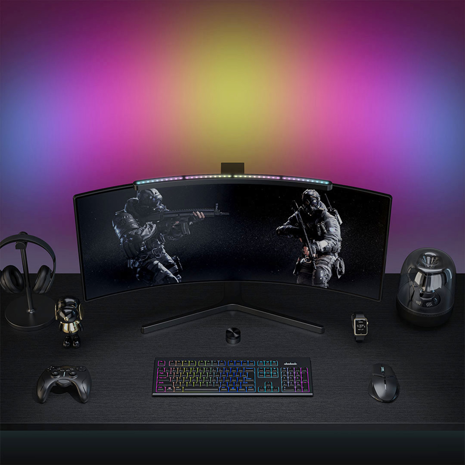 iCAN Monitor Light Bar, Curved Design for Screen, Eye-caring Dual Light, Perfect for Gaming and Office, Alloy Lamp Body, with Acoustic and Colorful Backlight, USB Powered.