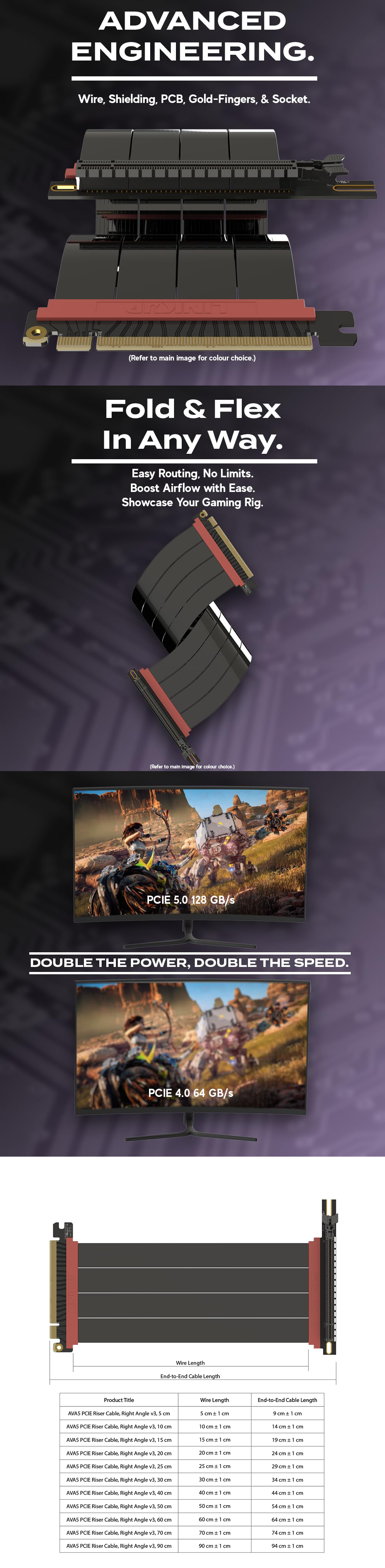 • LINKUP PCIE 5.0 Riser Cable, RTX5090 RX9070 GPU Ready, x16 128GB/s Speed, Compatible with PCIe 4.0 & WRX80/WRX90E, Right Angle