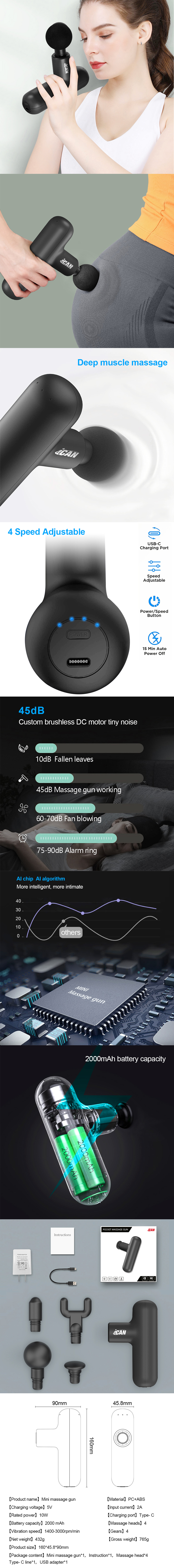• Quiet Performance - The iCAN Ultra Lightweight Mini Massage Gun delivers a whisper-quiet performance with its 45dB noise level, perfect for your moment of relaxation.