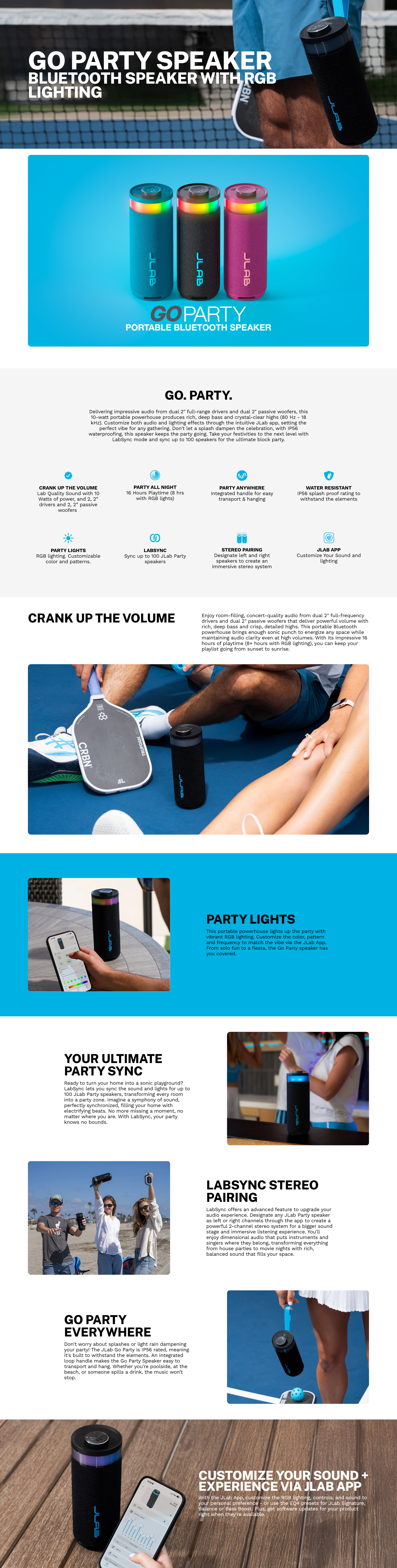 Sync up to 100 JLab Party speakers
