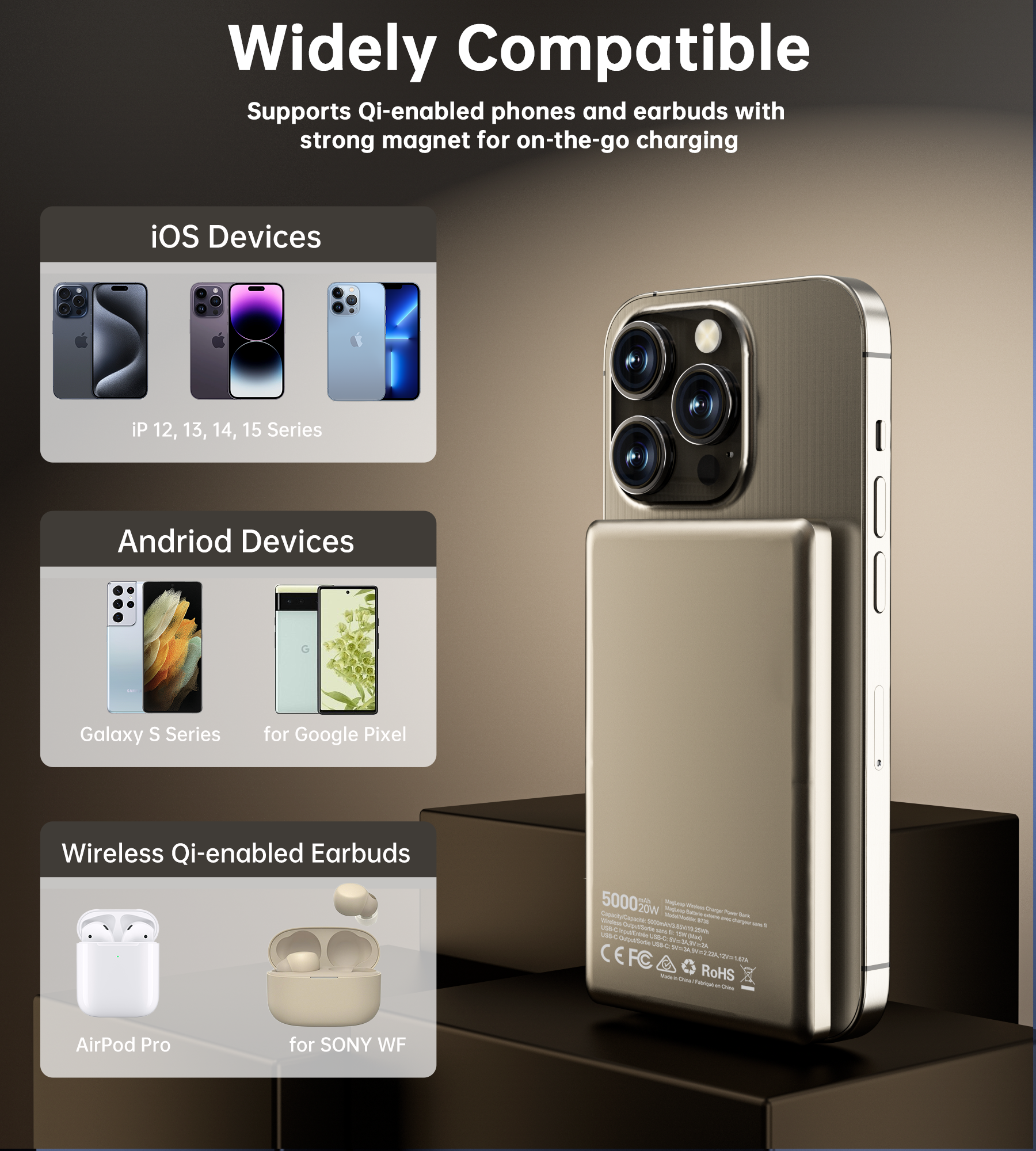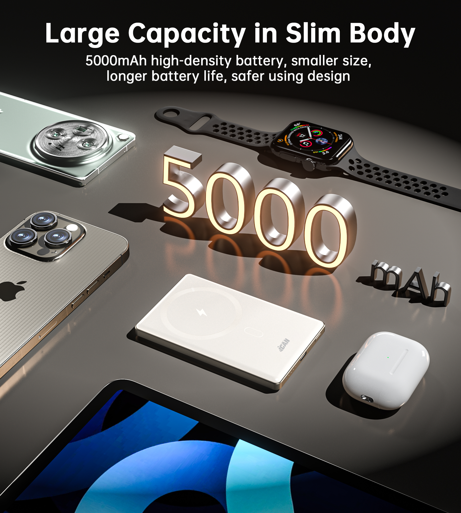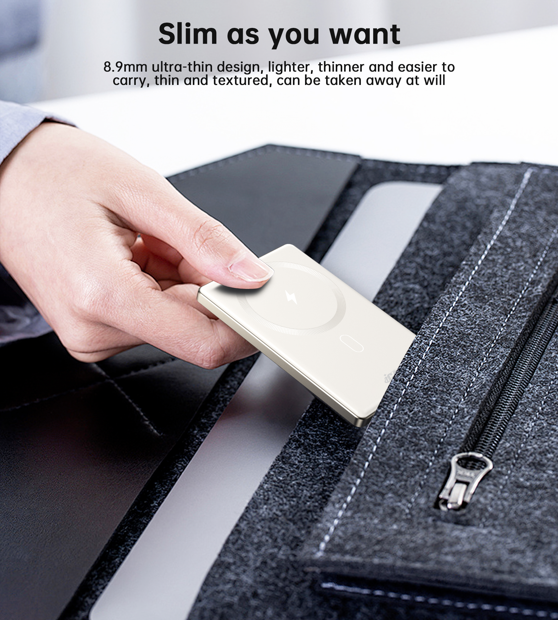 • 5000mAh PD 20W USB-C Portable Slim Wireless Magnetic Power Bank,White