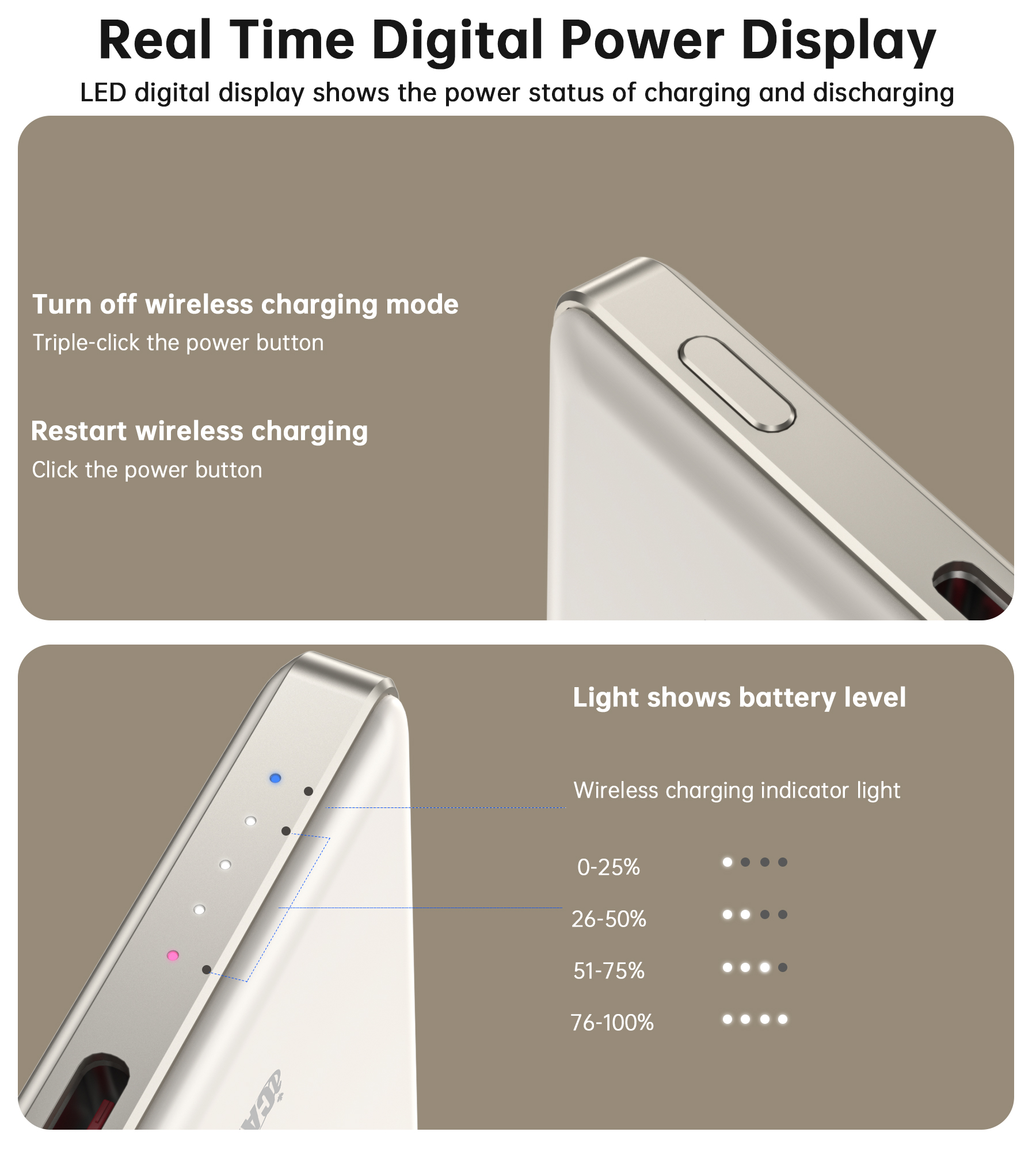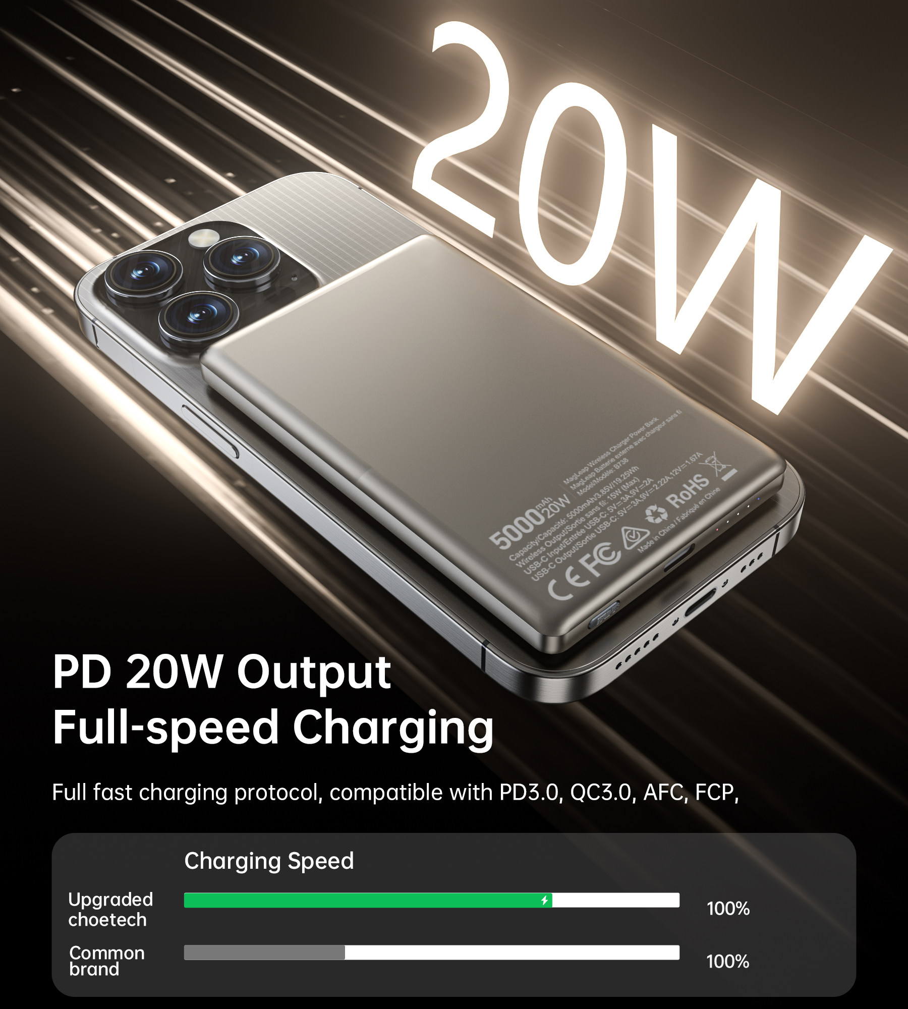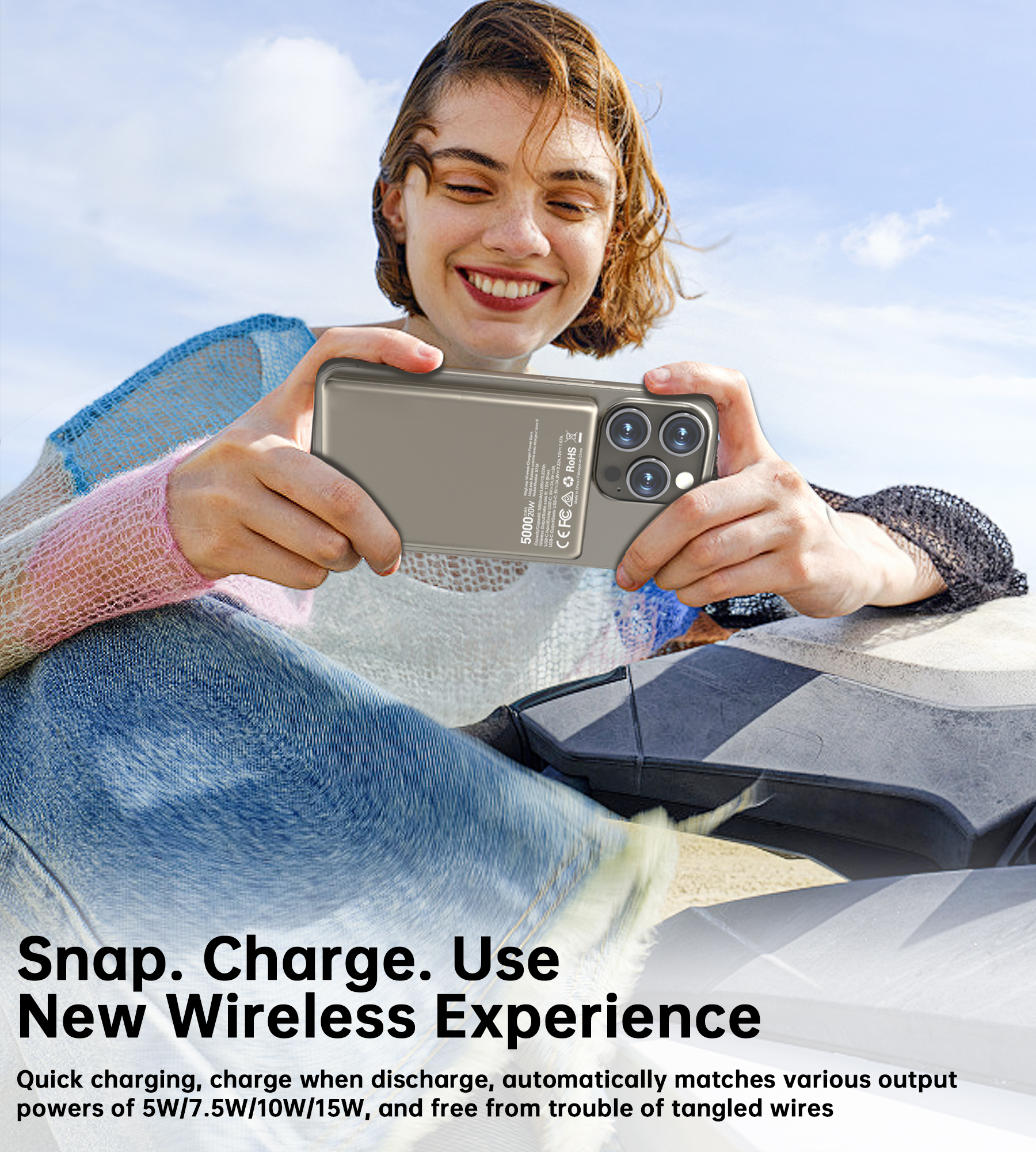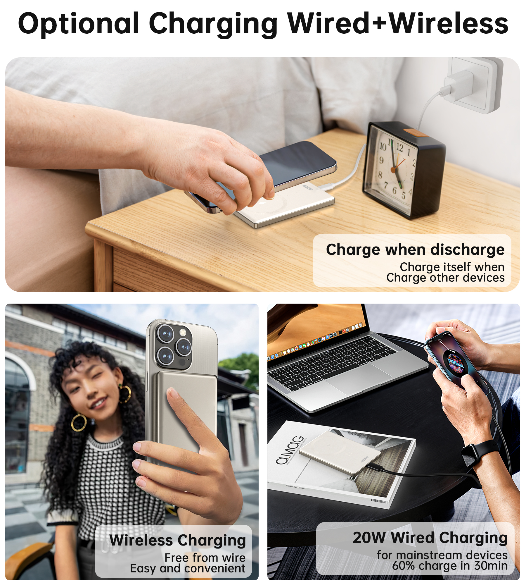 • 5000mAh PD 20W USB-C Portable Slim Wireless Magnetic Power Bank,White