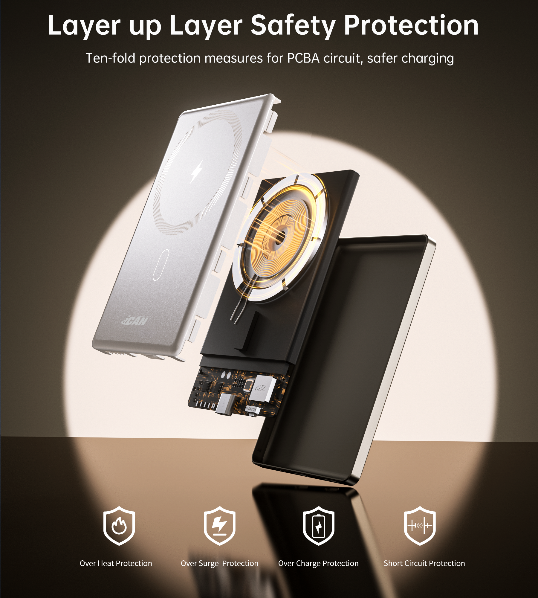 iCAN B738-WH 5000mAh PD 20W USB-C Portable Slim Wireless Magnetic Power Bank,White