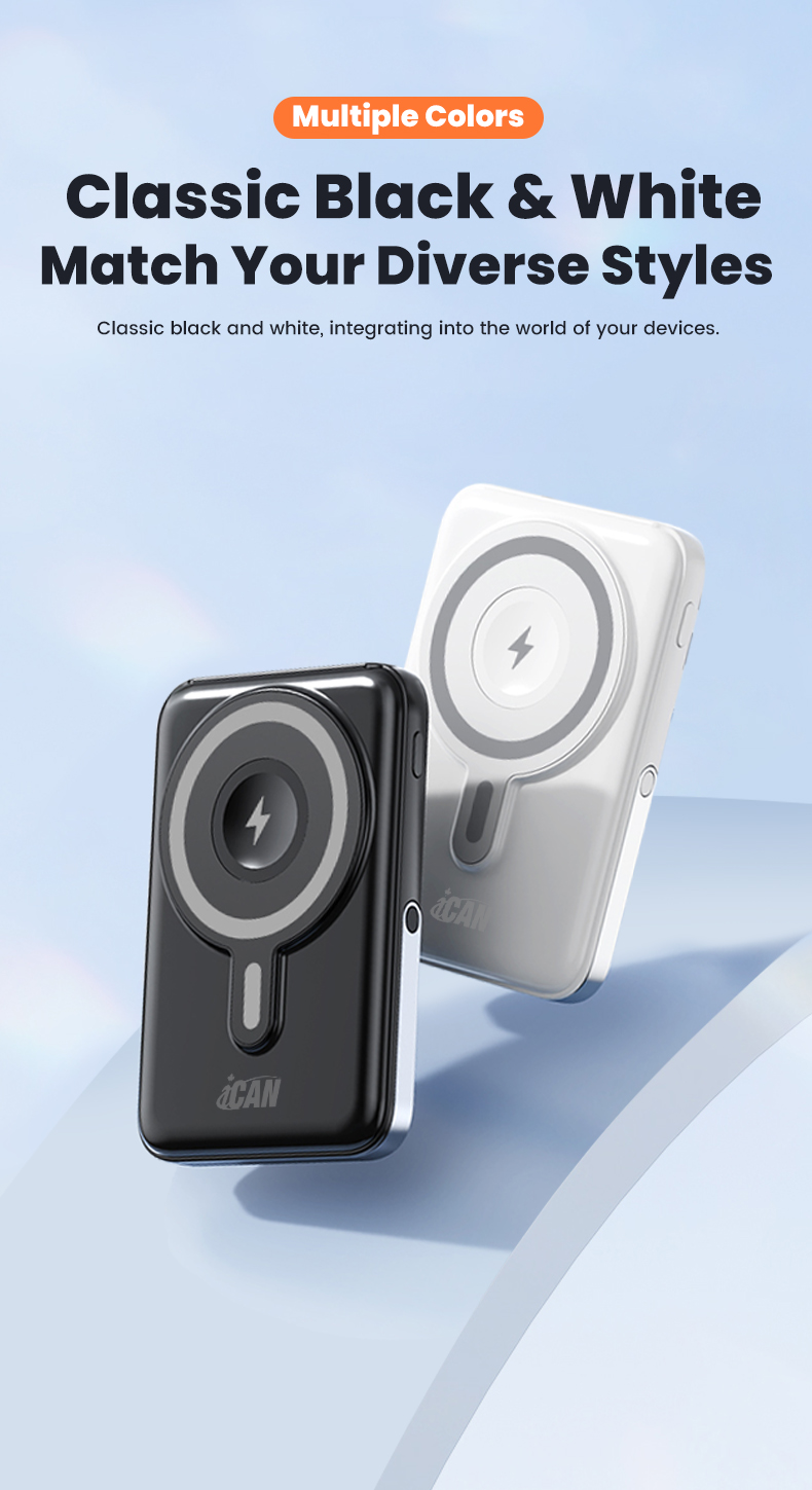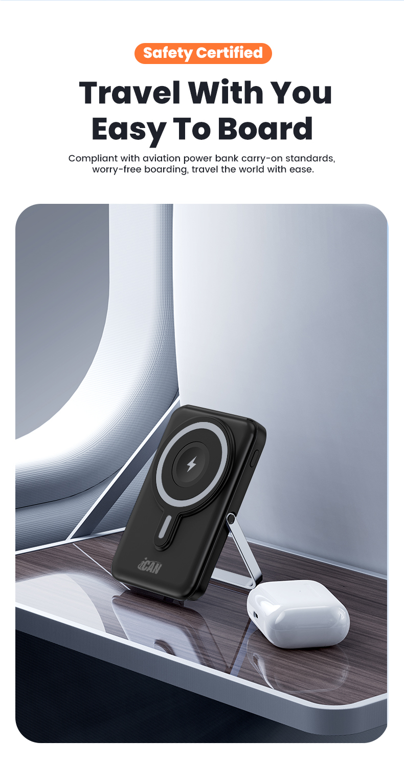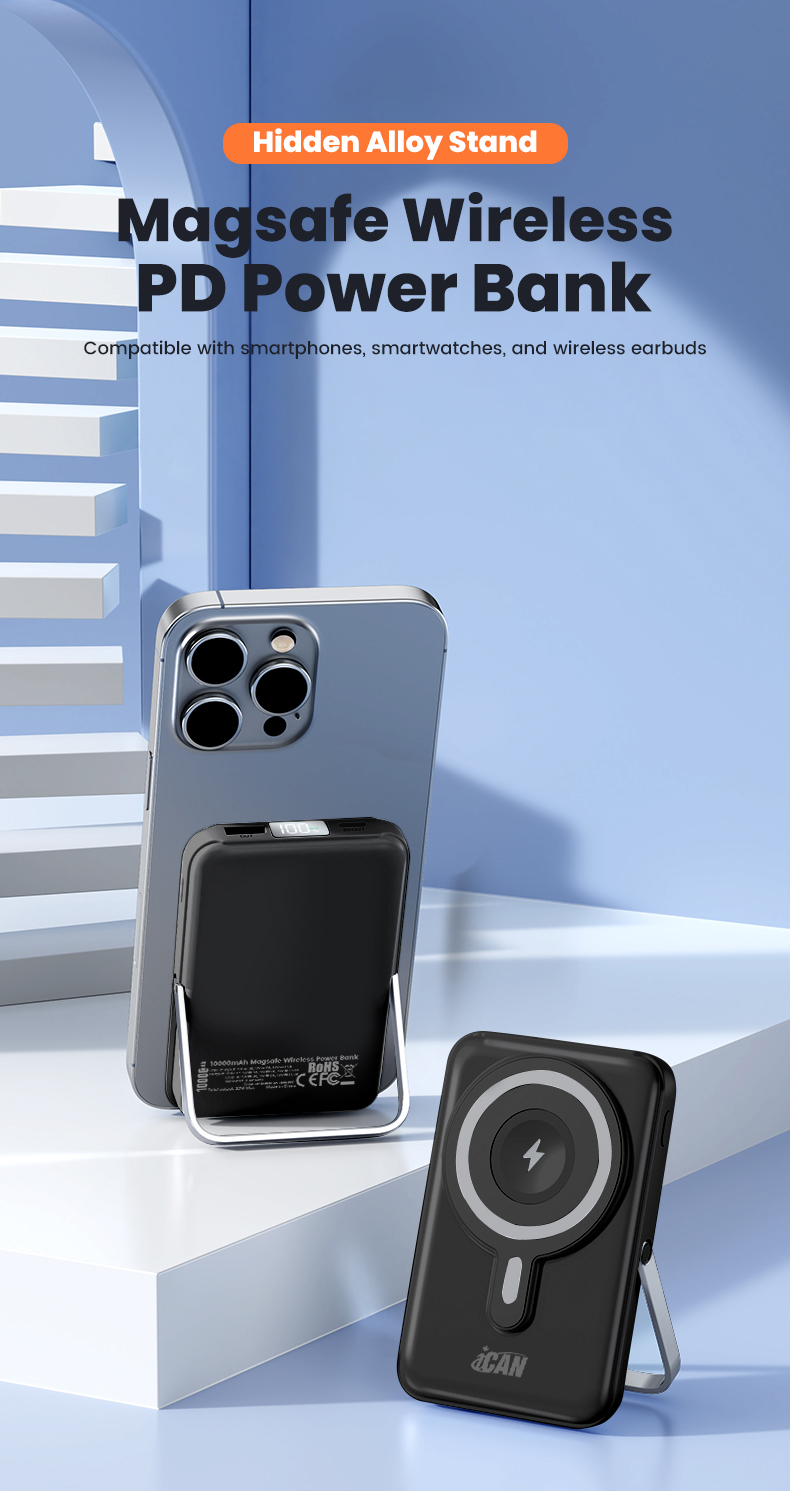 iCAN 10000mAh Wireless Charge PD20W with Aluminum Phone Stand Power Bank,Black