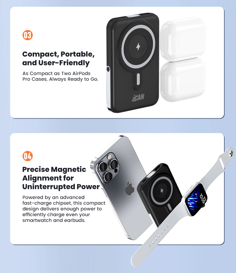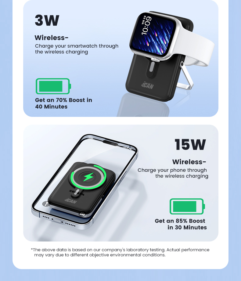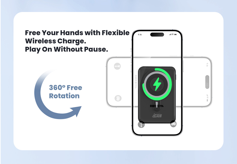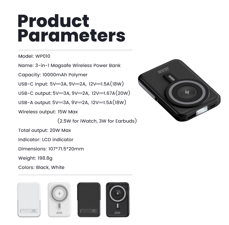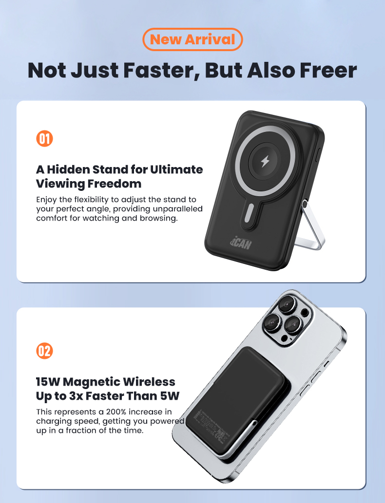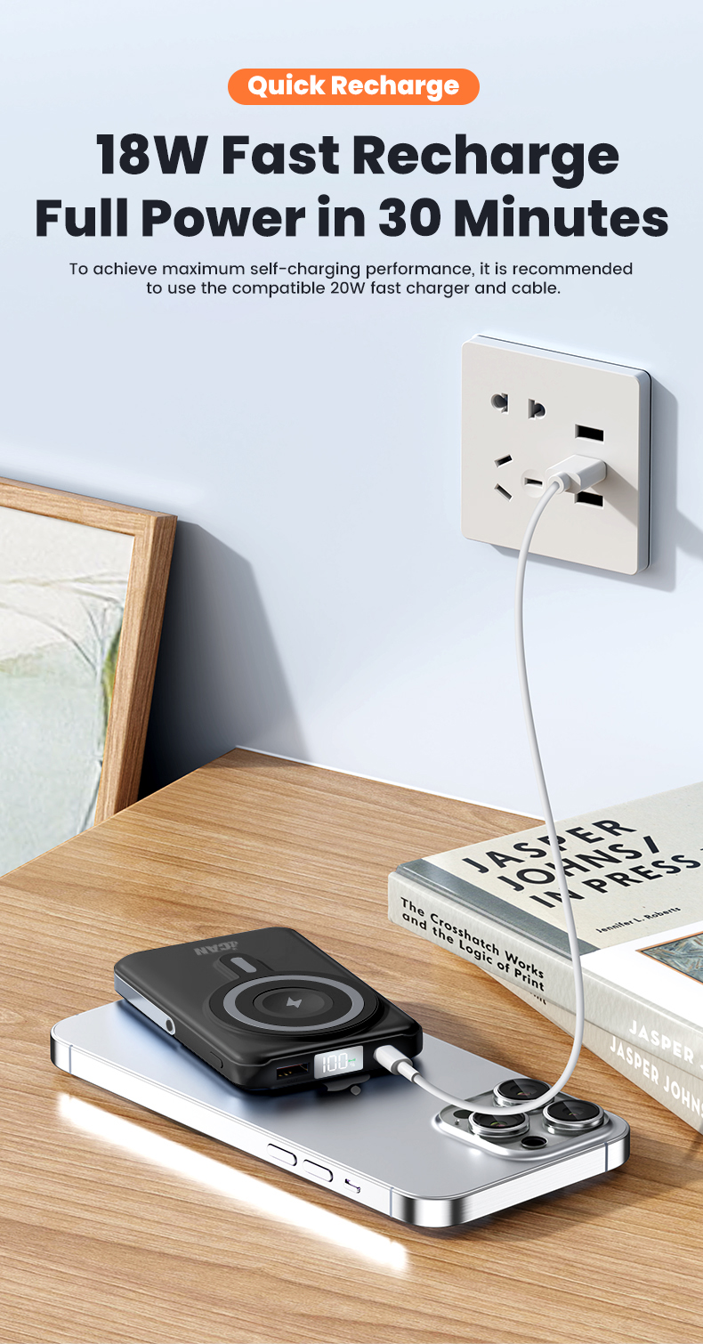 iCAN 10000mAh Wireless Charge PD20W with Aluminum Phone Stand Power Bank,Black