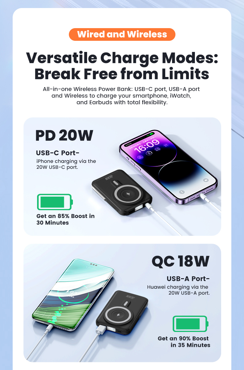 • 10000mAh Wireless Charge PD20W with Aluminum Phone Stand Power Bank