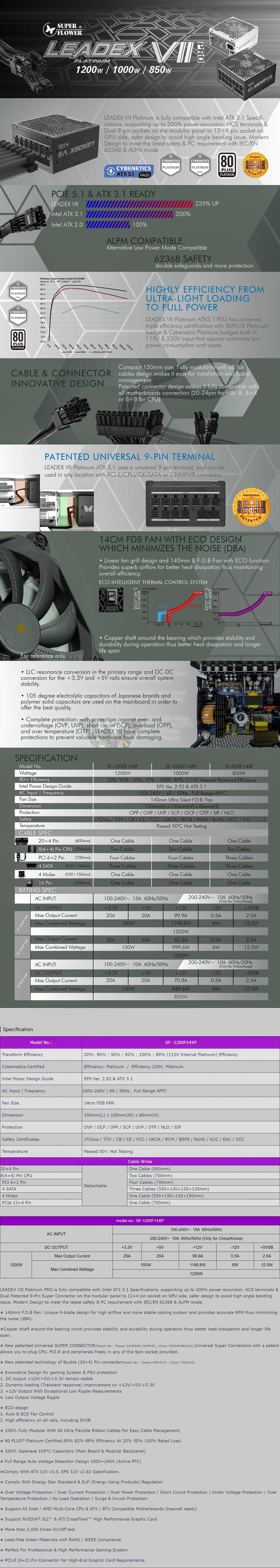 • Super Flower Leadex VII XP 1000W ATX 3.1 Platinum Power Supply, White