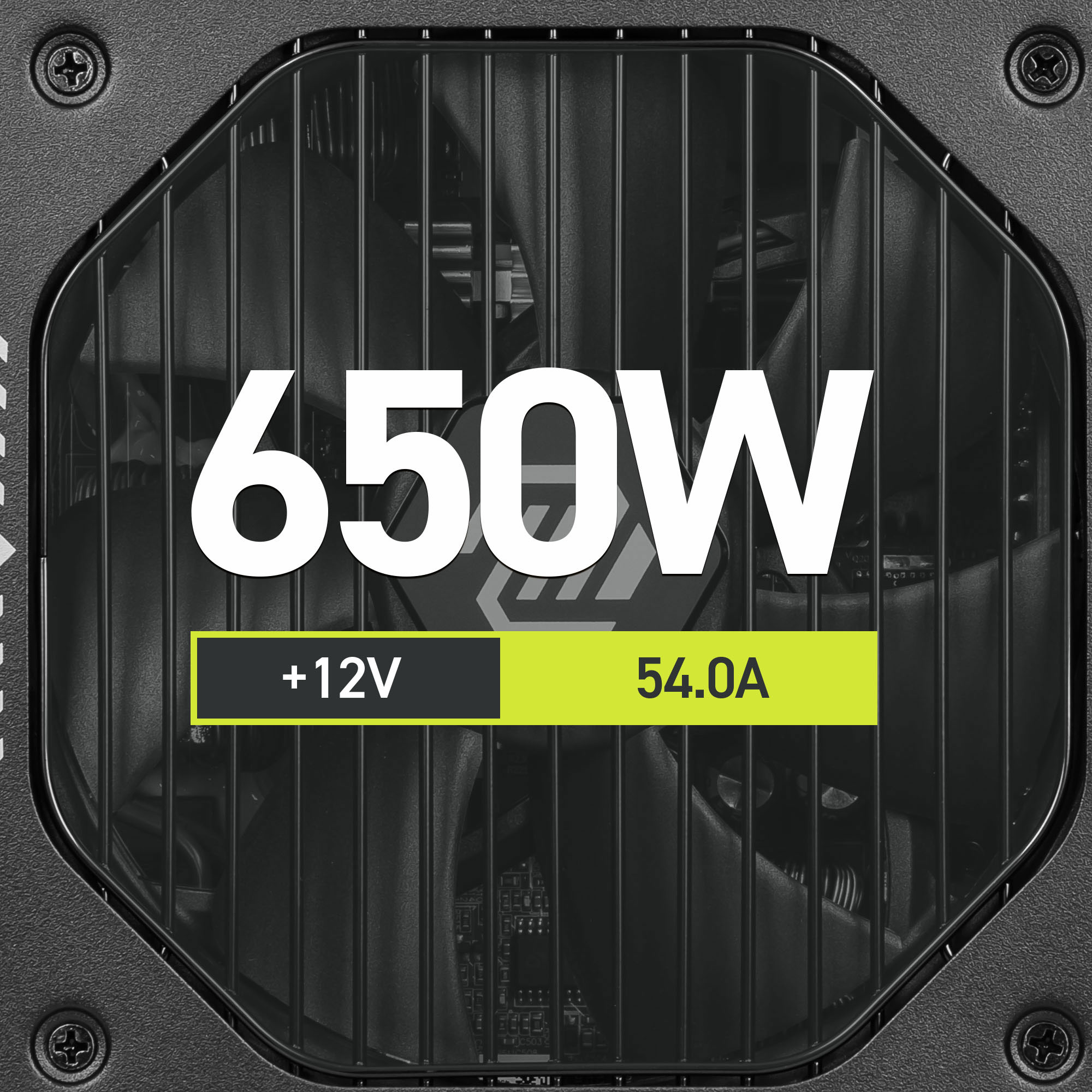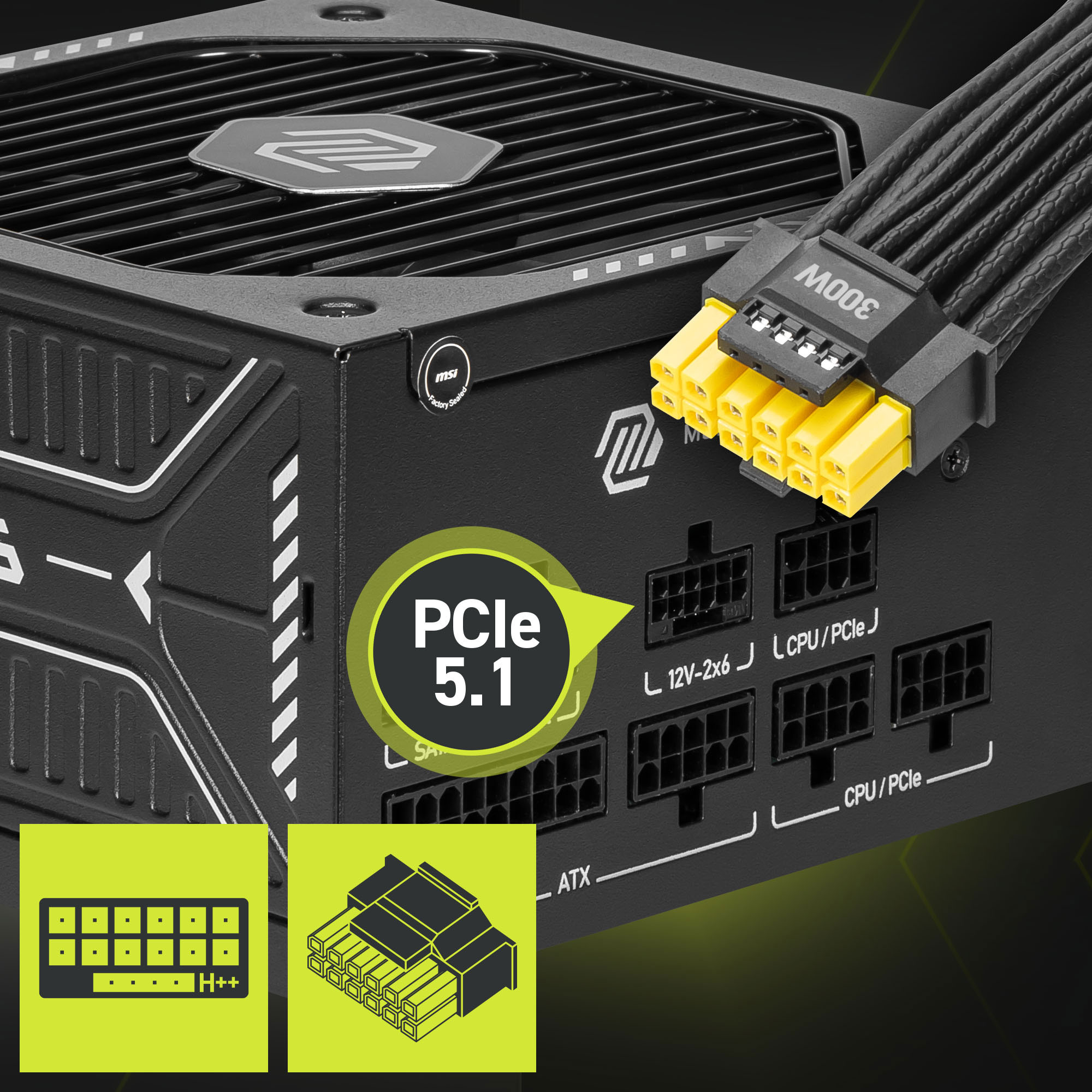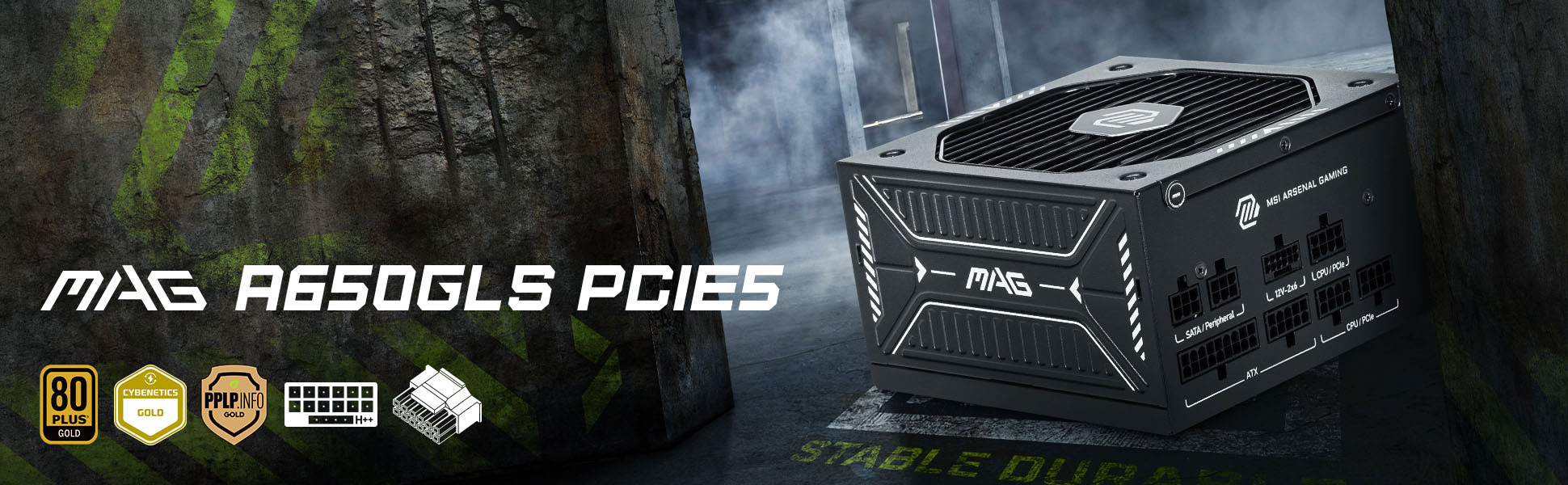 The MAG A650GLS PCIE5 provides 80 PLUS Gold-certified power efficiency, a native 12V-2x6 connector to support RTX 50 series graphics cards, and is ATX 3.1 ready, cooled by a 135 mm fluid dynamic bearing (FDB) fan for superior performance.
