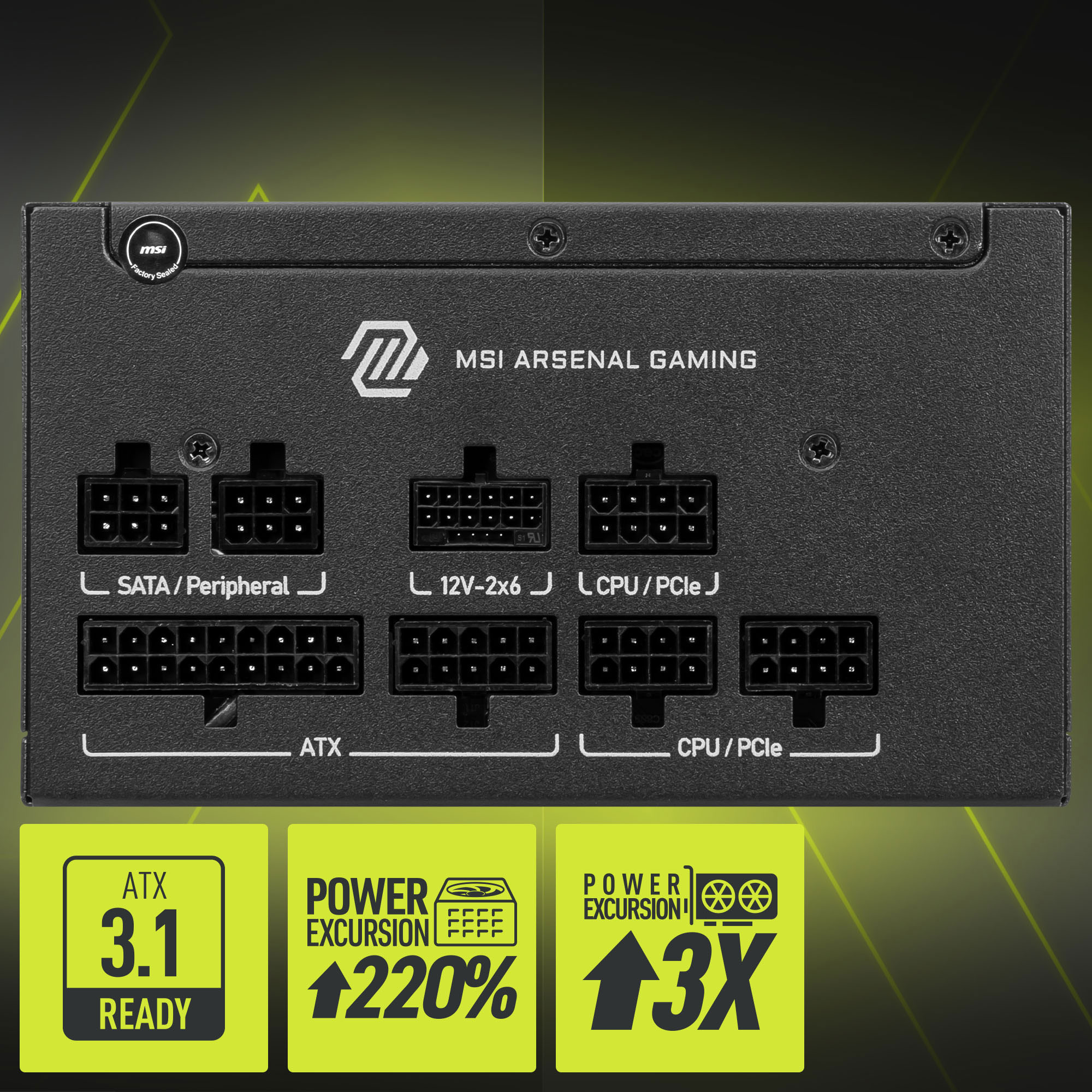 MSI MAG A650GLS PCIE5, Fully Modular Compact , 80+ Gold, ATX 3.1 & PCIe 5.1 Ready, 12V-2x6 cable, Low-Noise, 10 Year Warranty