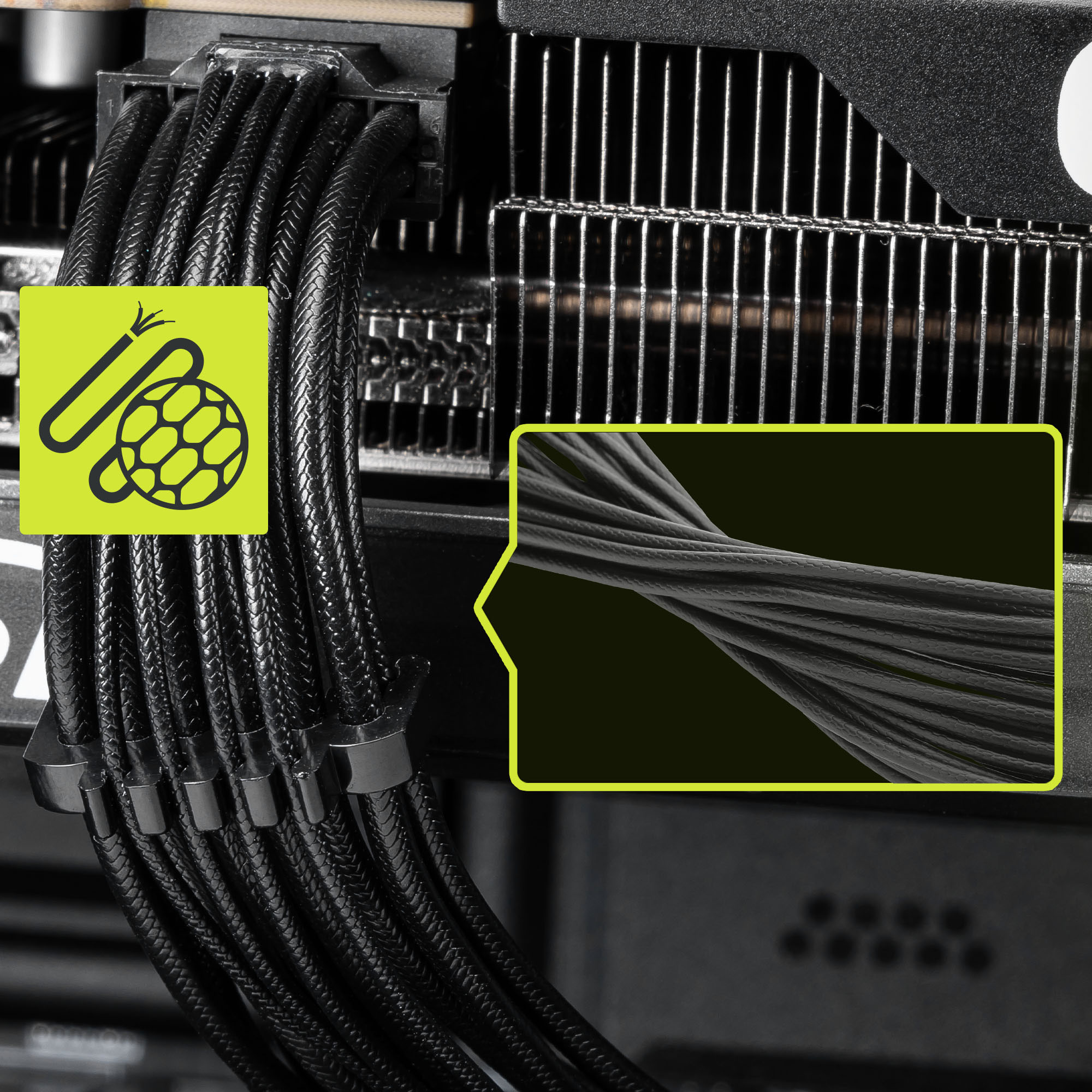 The sleek matt black embossed jacket cables not only elevates its appearance but also makes cable management significantly easier for users.