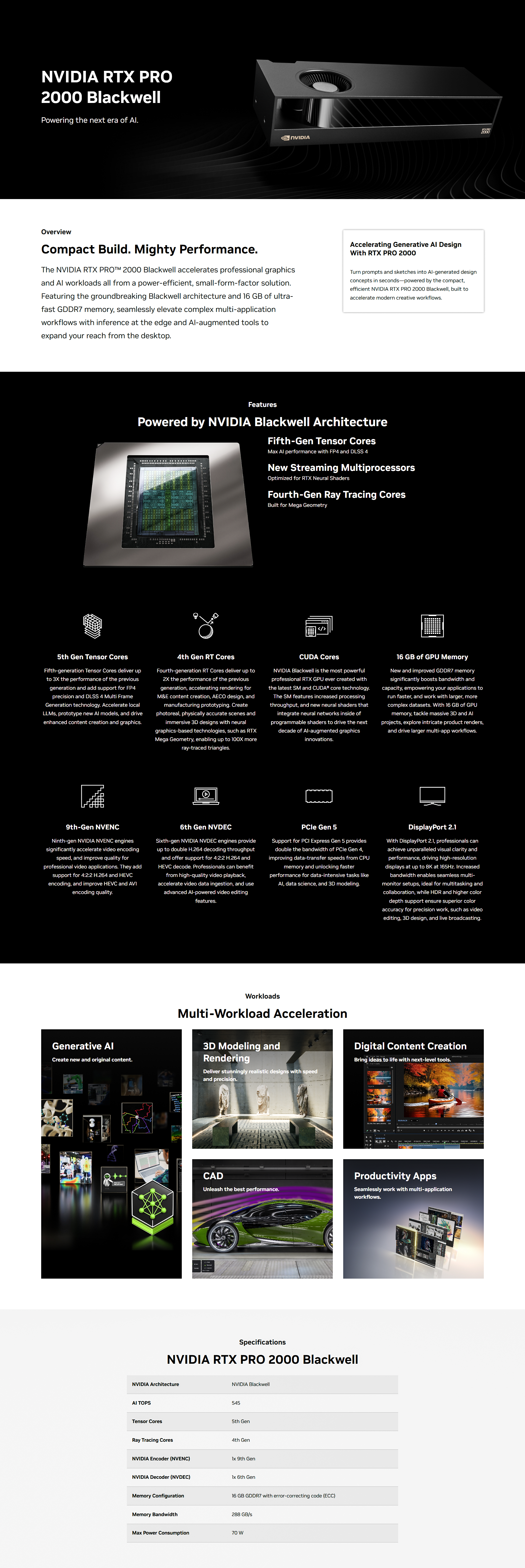 • NVIDIA ENT PRO VIZ RTX PRO 2000 BLACKWELL 8GB GDDR7 PCI Express 5.0 x8