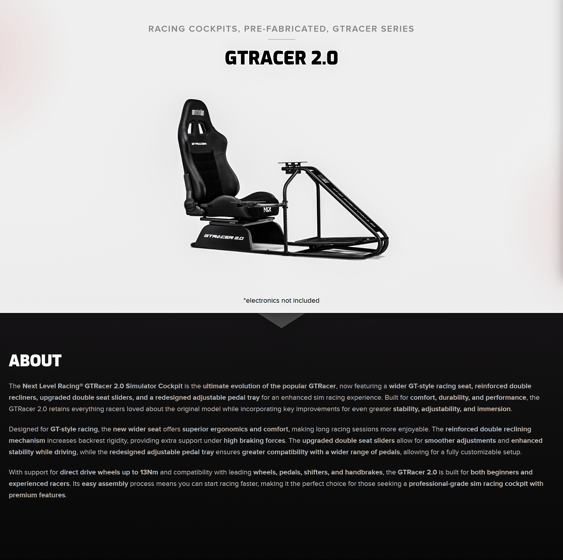 • NEXT LEVEL RACING® GTRacer 2.0 Simulator Cockpit (NLR-R007)