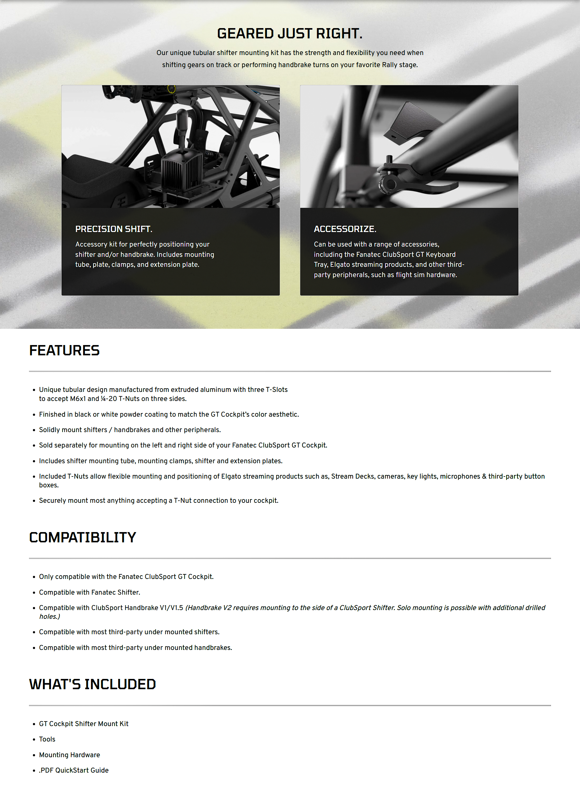Fanatec - ClubSport Cockpit Shifter Mount, Black, Right Side