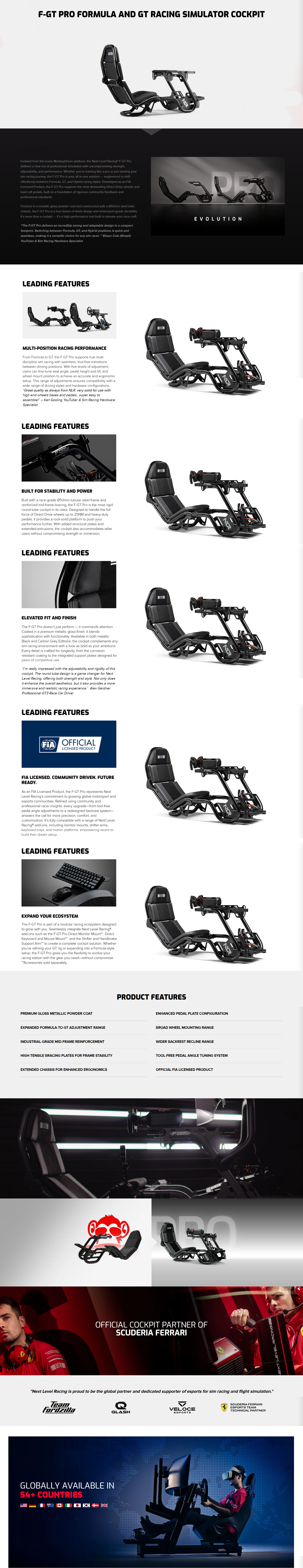 • NEXT LEVEL RACING F-GT Pro Formula and GT Racing Simulator Cockpit