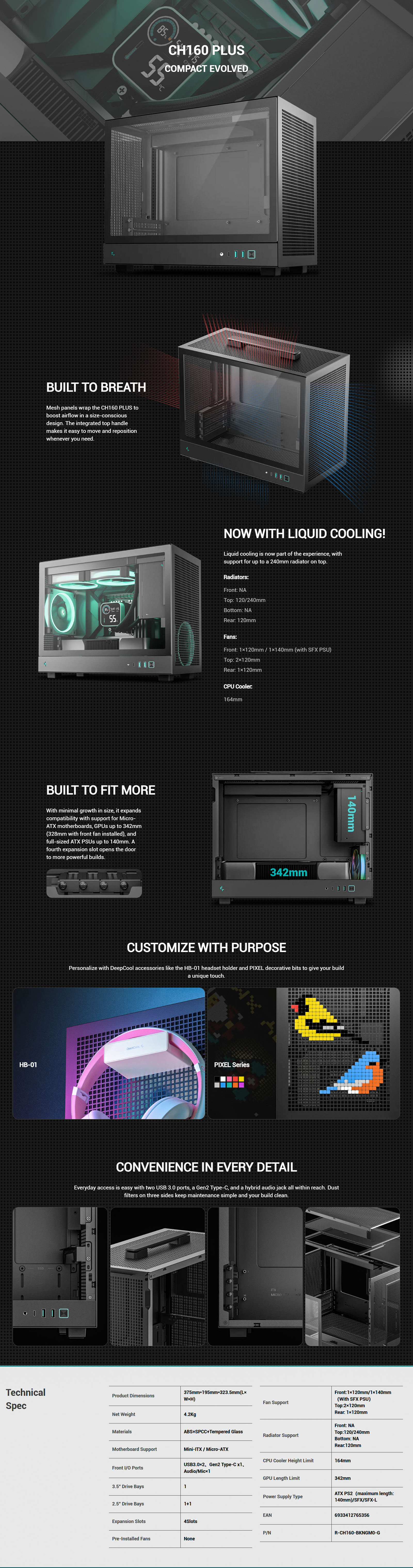 DeepCool CH160 PLUS Micro-ATX Mini Tower PC Case