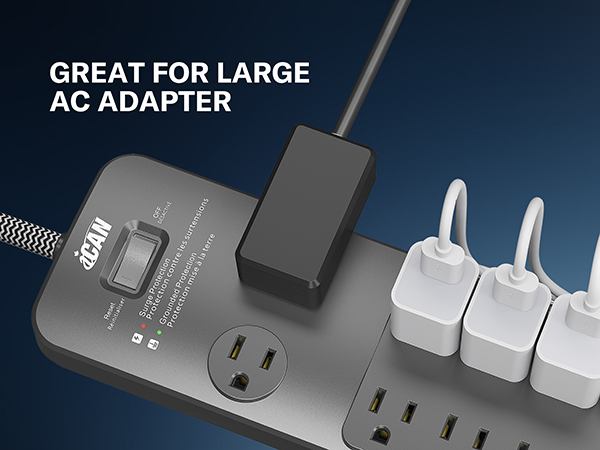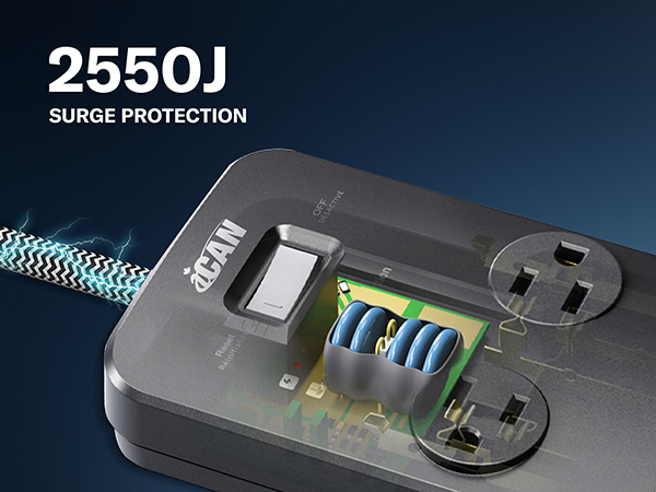 • iCAN 10 Outlets Surge Protector with 2 USB-A and 1 USB-C, 6ft Cord