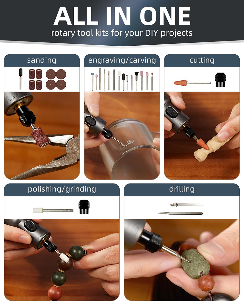 • UF-TOOLS Cordless Rotary Tool, Variable Speed Multi-Purpose Kit.