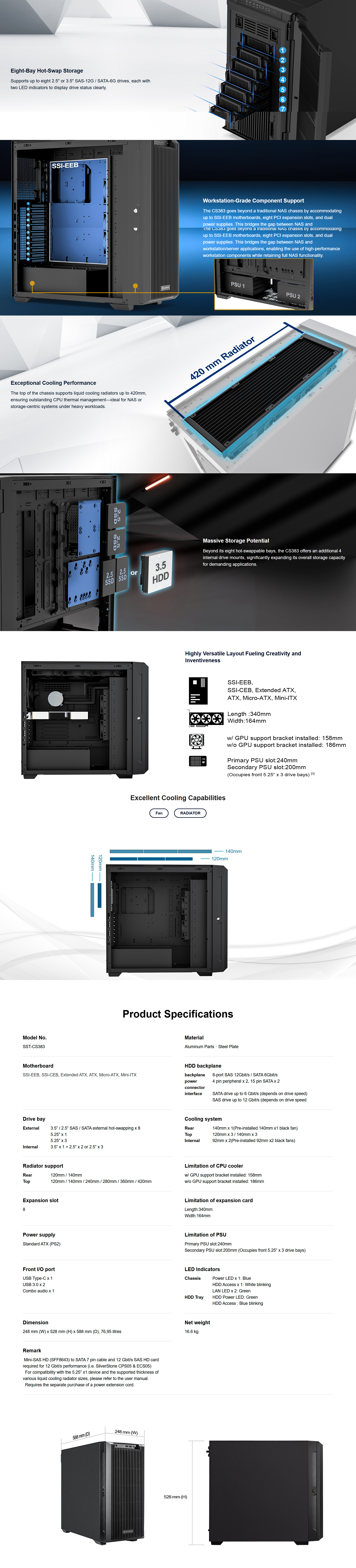 SilverStone CS383 8-bay SAS-12G / SATA-6G hot-swappable high performance SSI-EEB / E-ATX NAS chassis - (CS383)