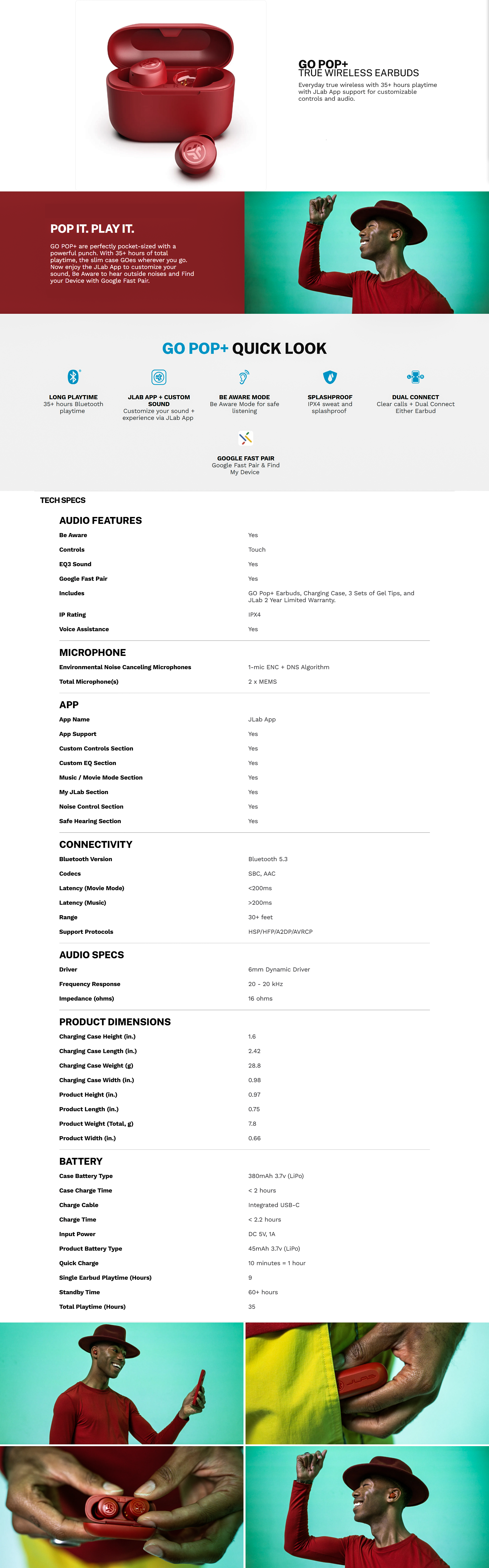 JLAB AUDIO Go Pop+ True Wireless Earbuds, Rose