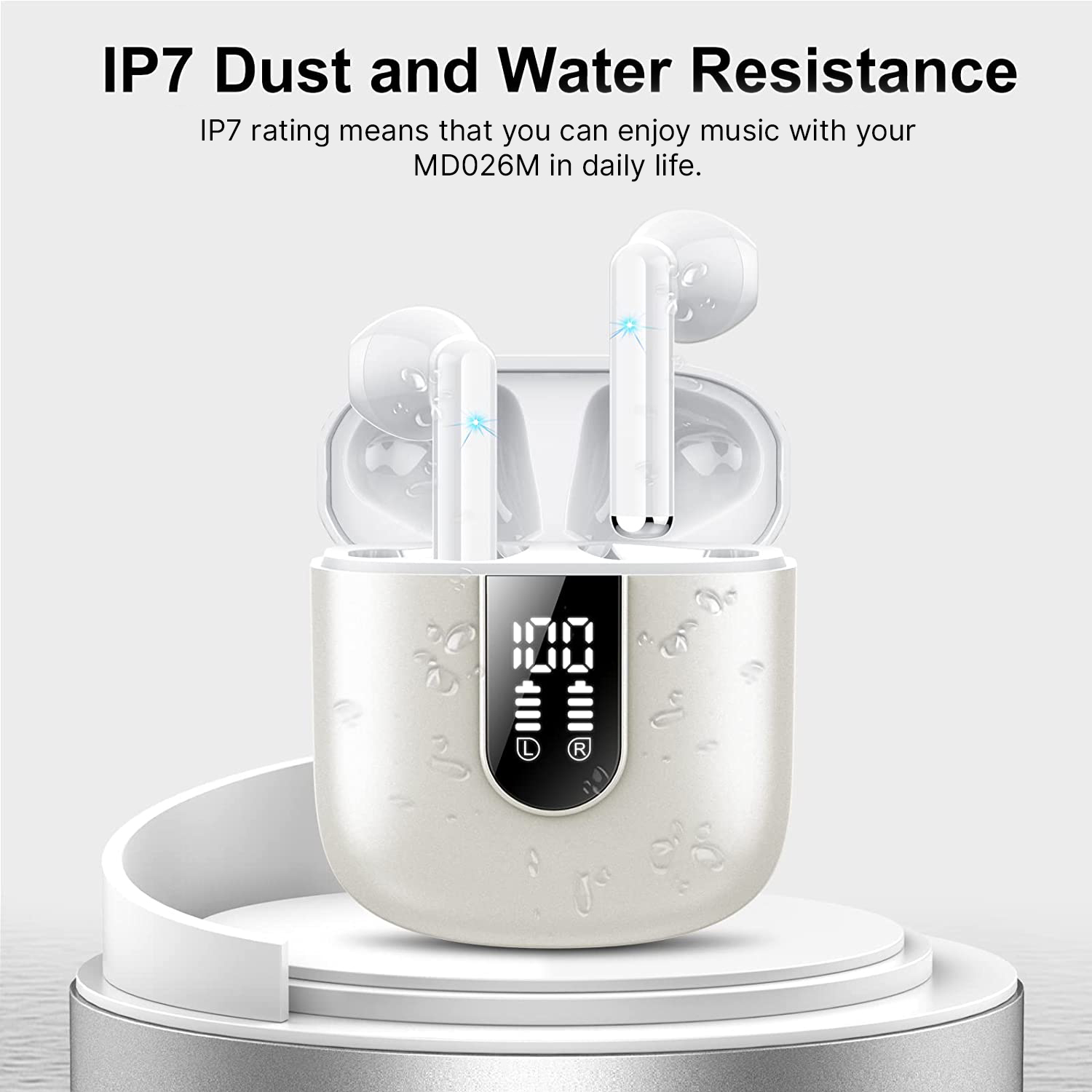 iCAN MD026M-WH Wireless Earphone, Deep Bass Stereo, Noise Cancelling Mic, LED Power Display, Touch Control For Android and iOS