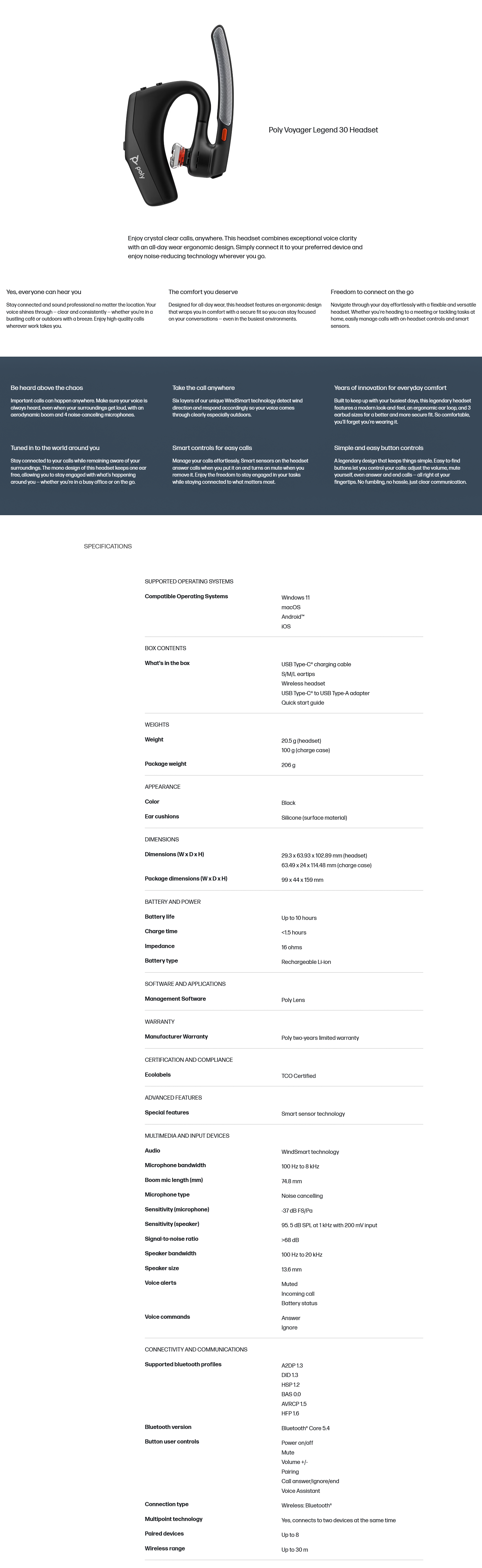 Designed for all-day wear, this headset features an ergonomic design that wraps you in comfort with a secure ft so you can stay focused on your conversations even in the busiest environments.