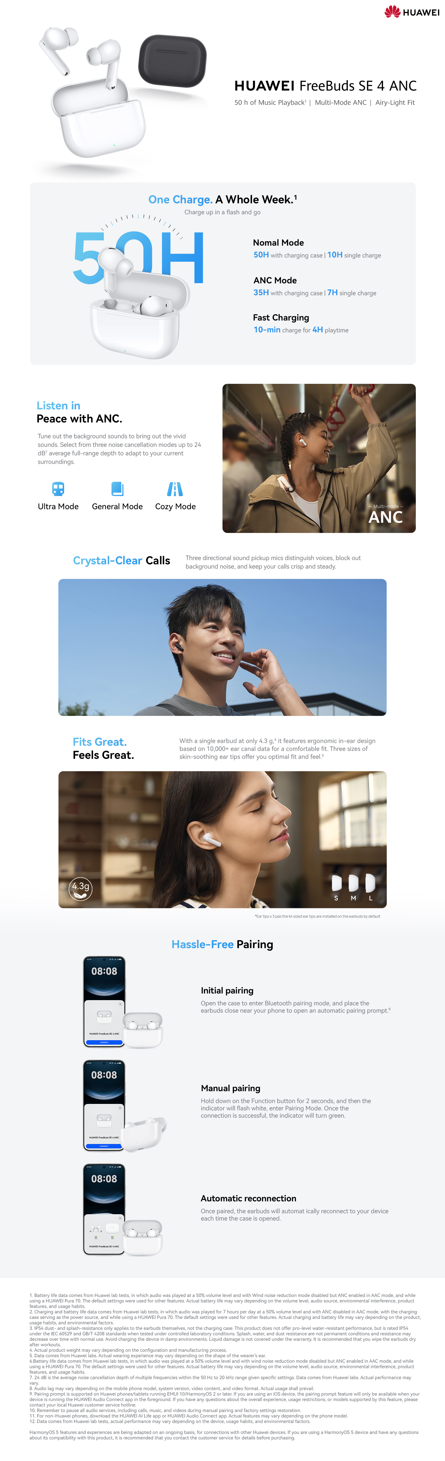 • HUAWEI FreeBuds SE 4 ANC True Wireless Earbuds, White