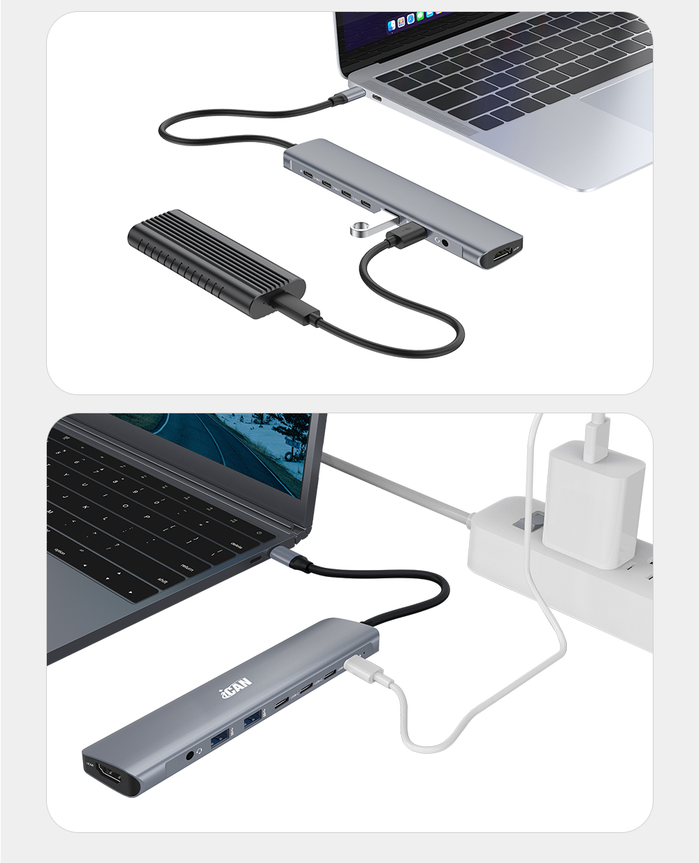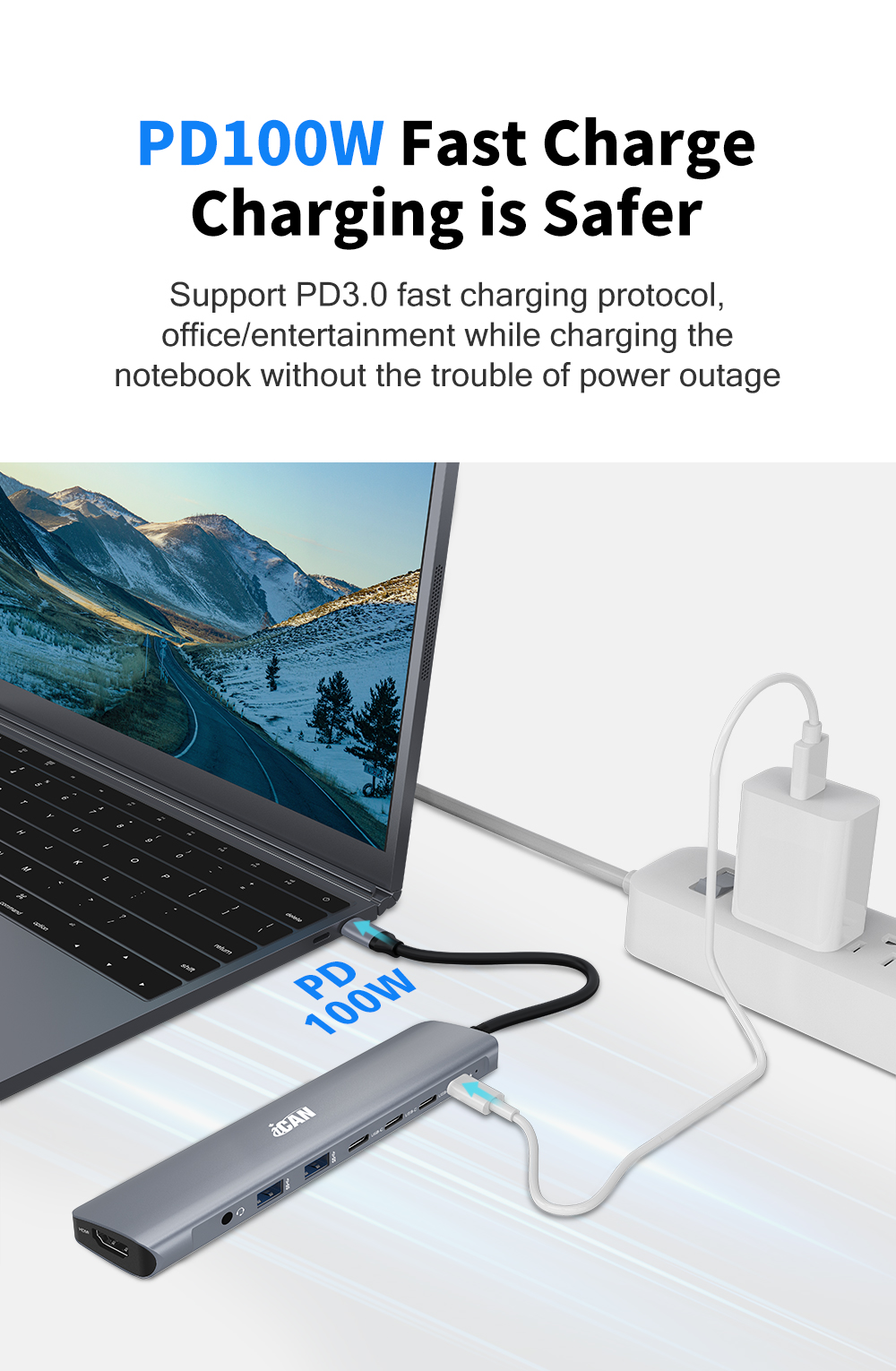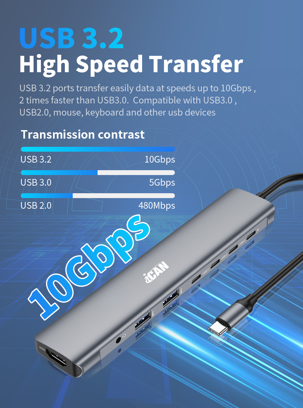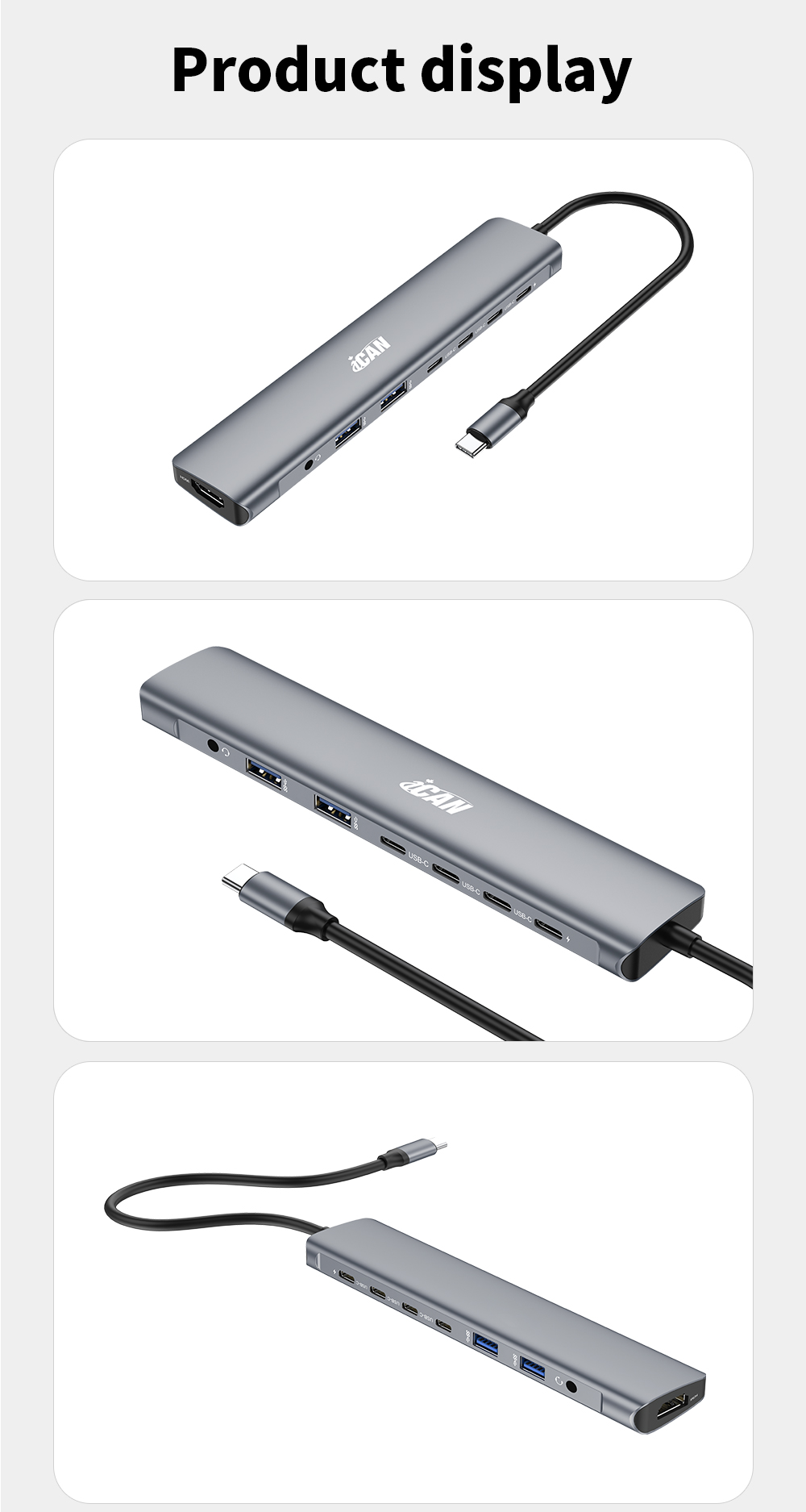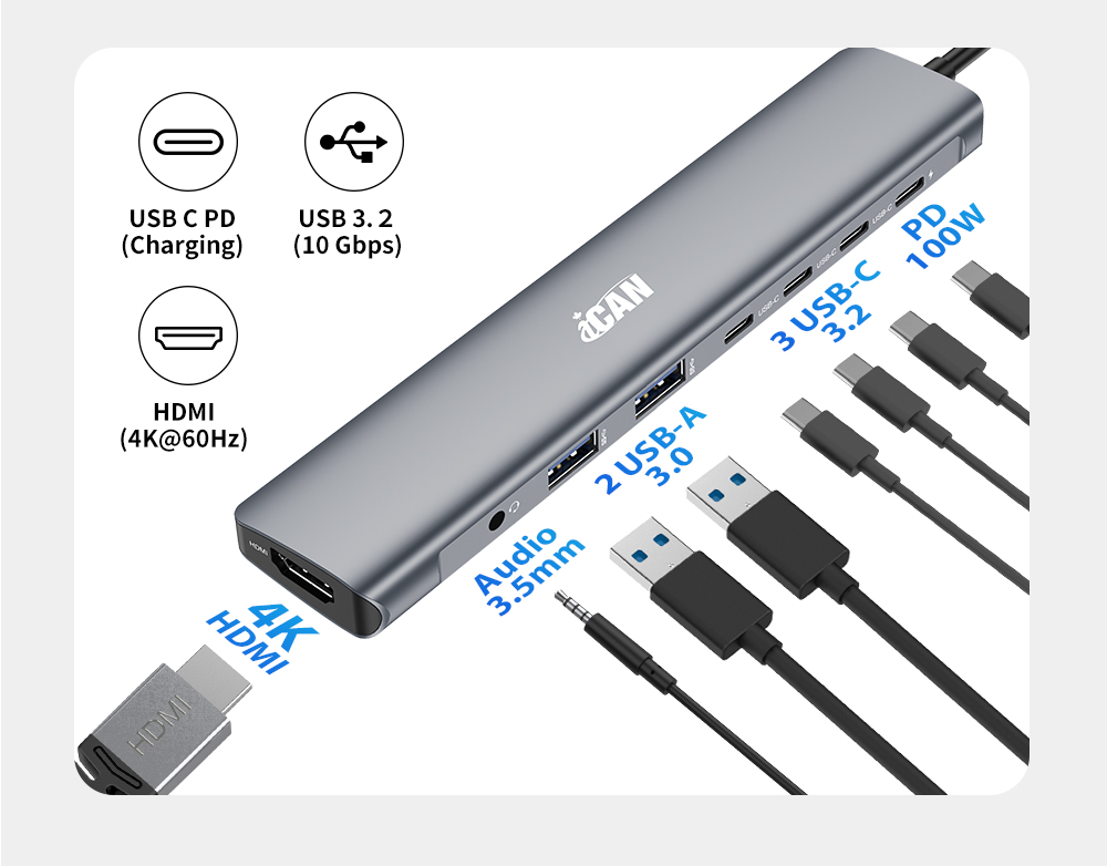 • iCAN 8-in-1 10Gbps 100W USB-C Hub