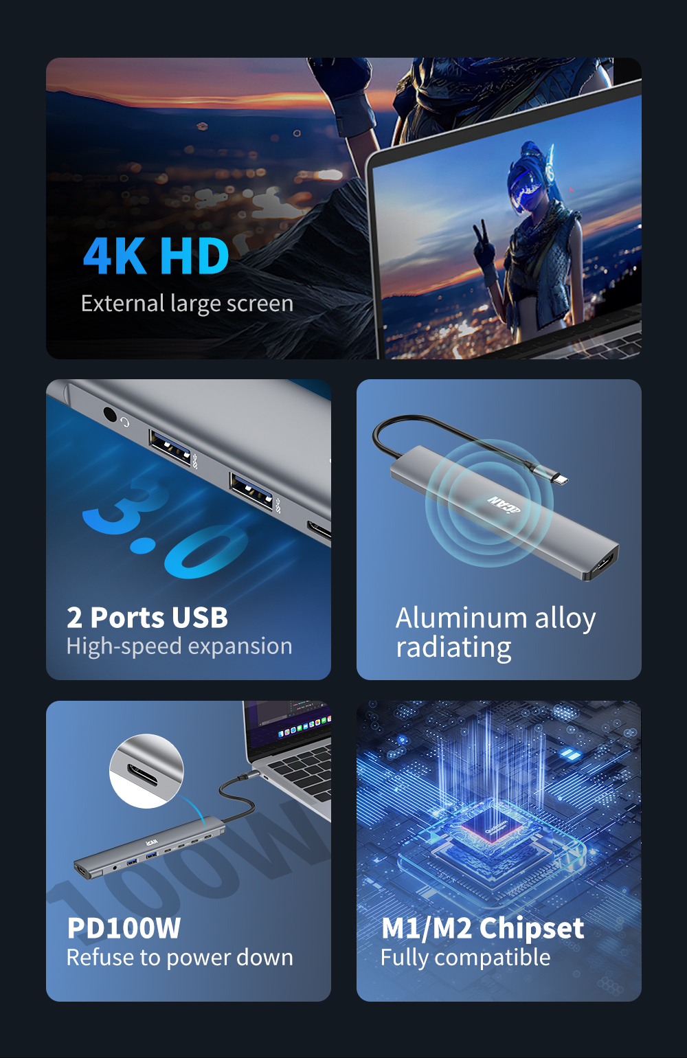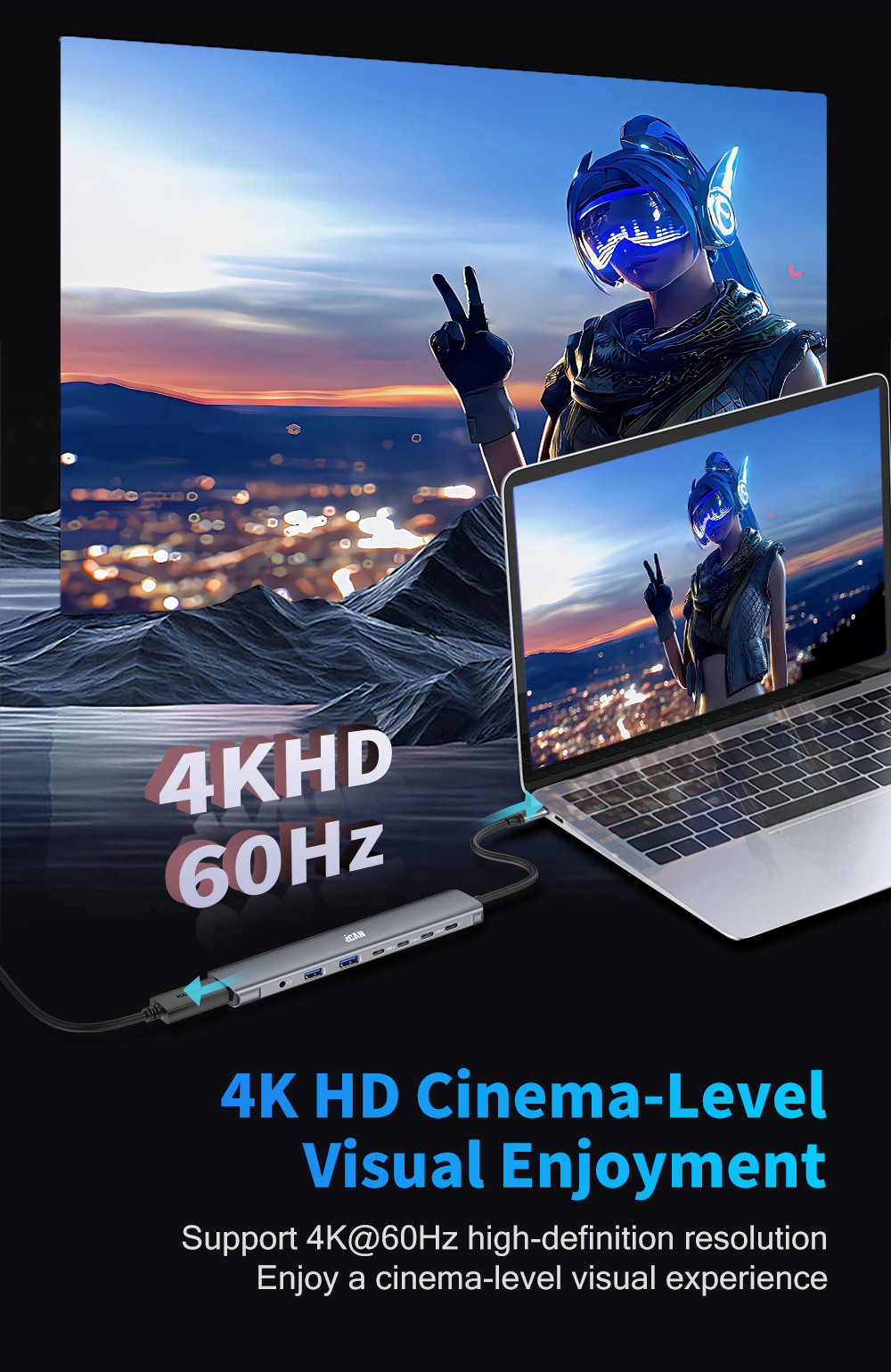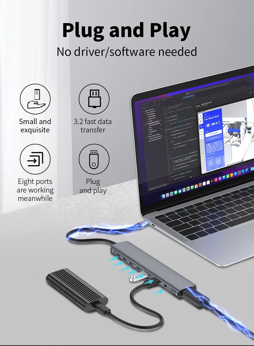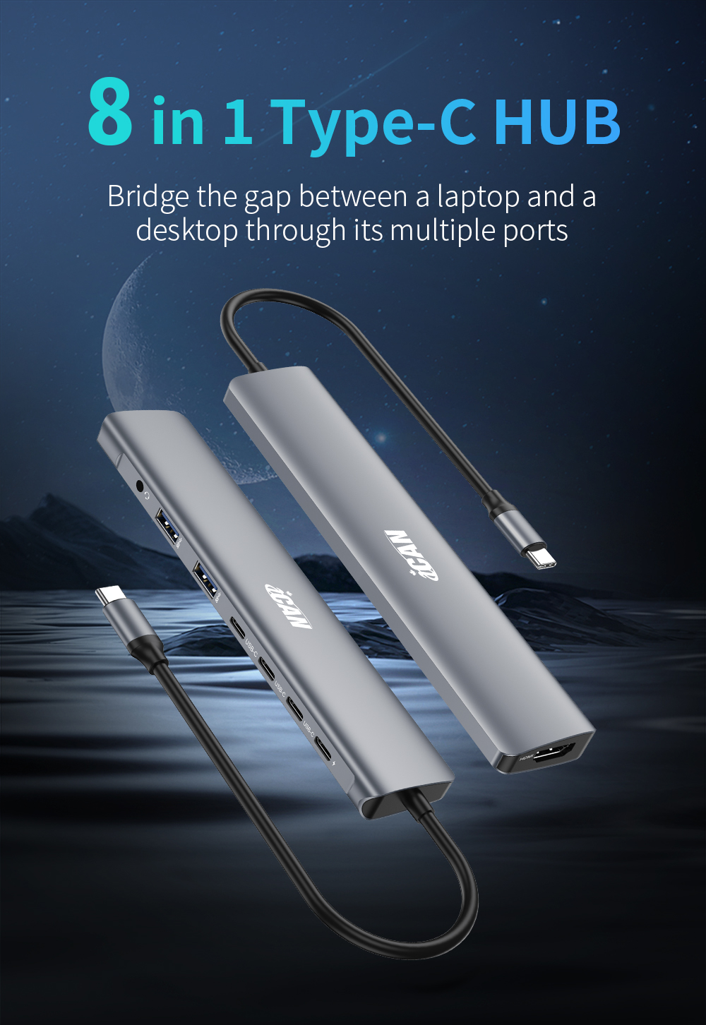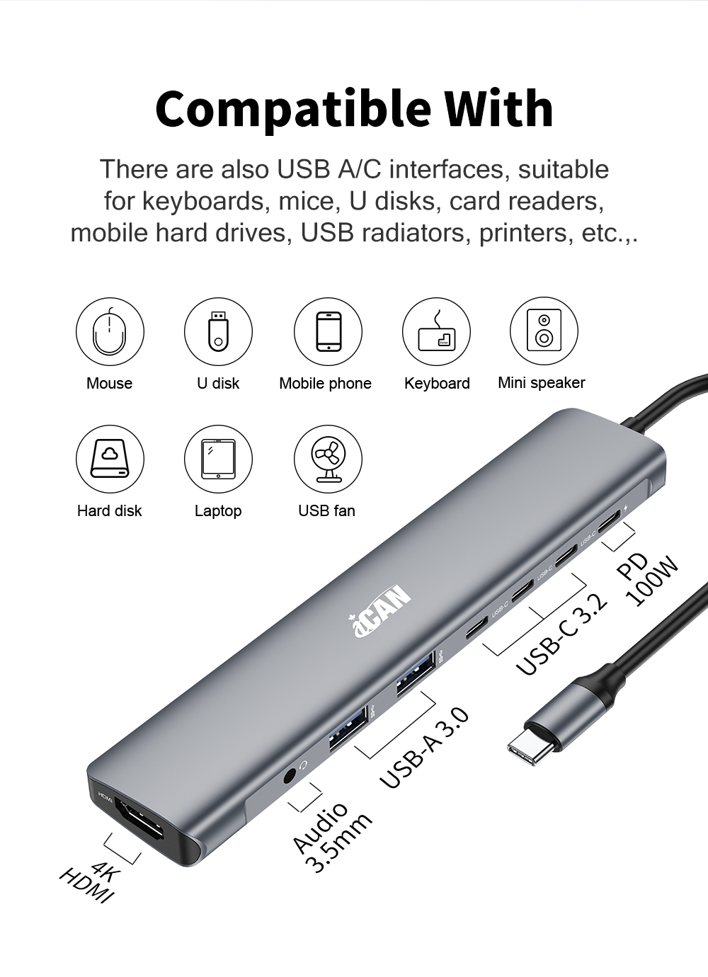 • iCAN 8-in-1 10Gbps 100W USB-C Hub