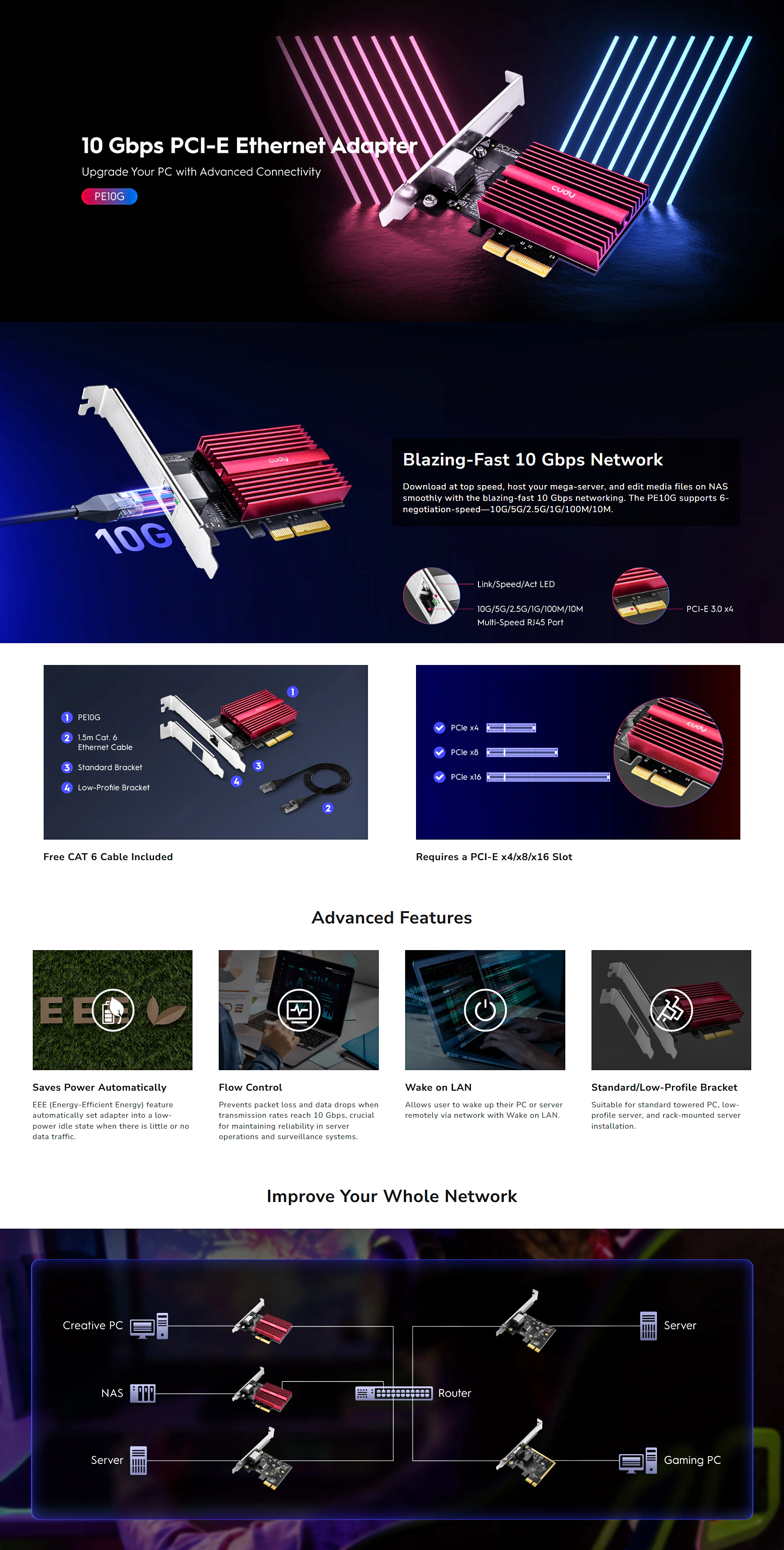 Cudy PE10G 10GB Ethernet PCIE Network Adapter, Flow Control, 10 Gigabit Ethernet Adapter, Supports Windows 11/10, WindowsServer 2022 and Linux