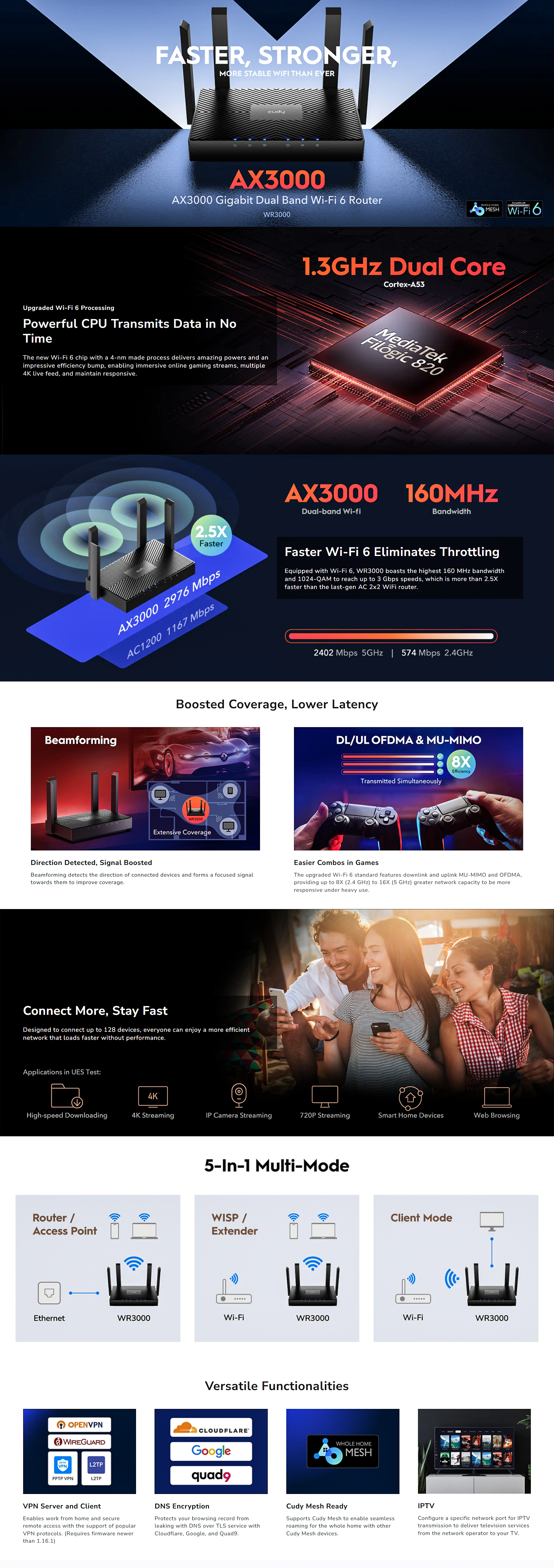 • Cudy WR3000 AX3000 Dual Band Wi-Fi 6 Router