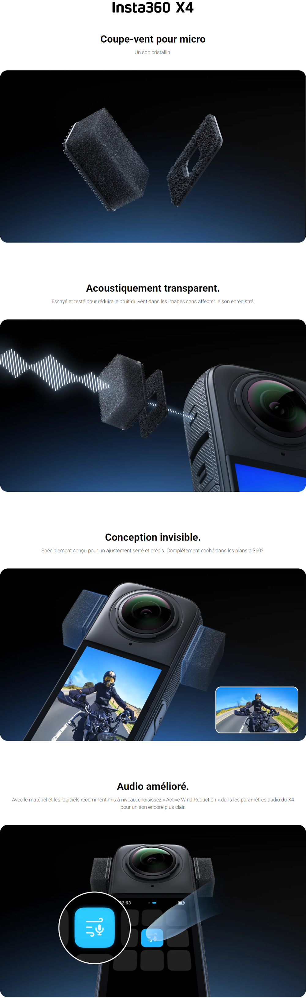 • Coupe-vent pour micro Insta360 X4 (CINSBBMR)
