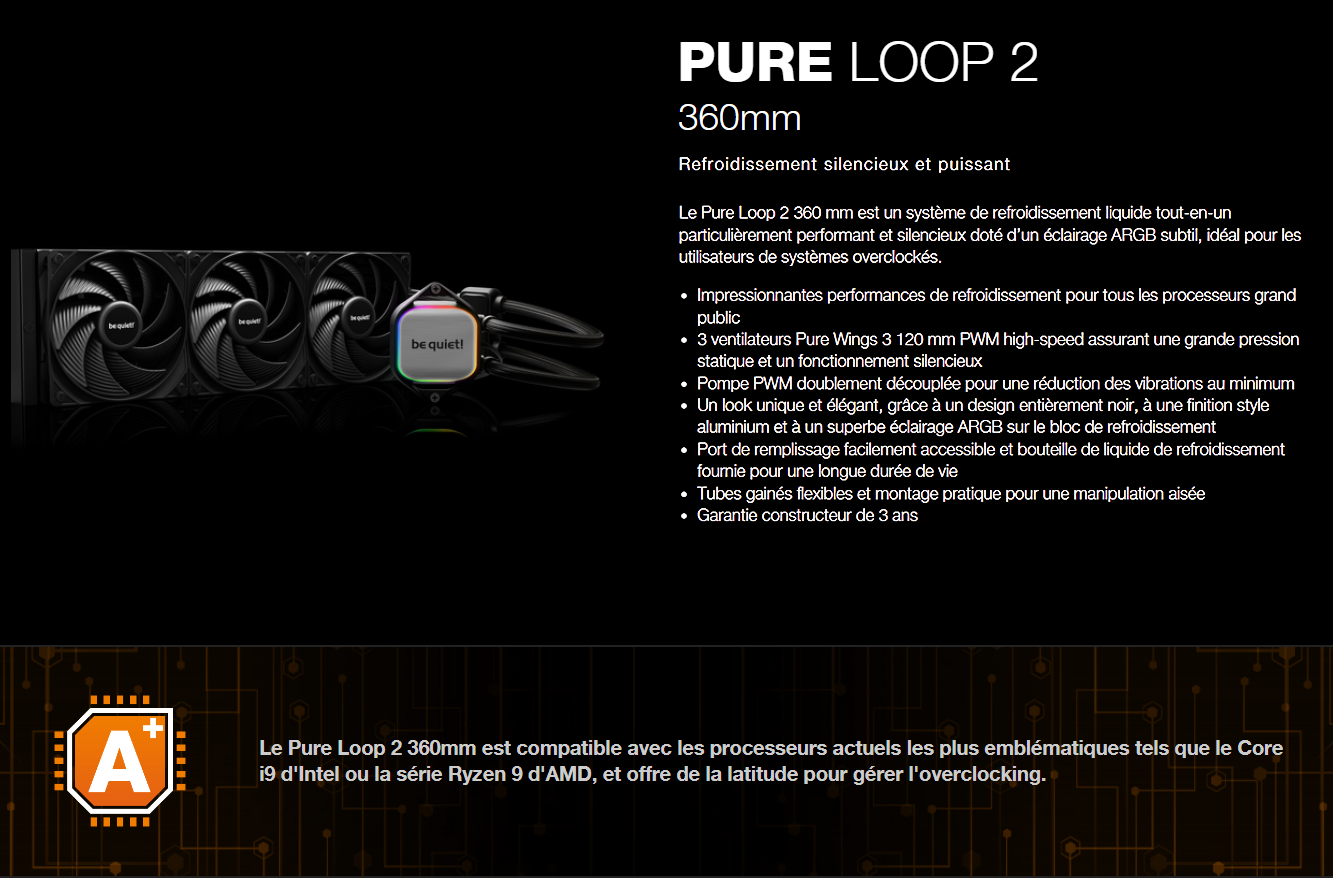• be quiet! (PURE LOOP 2) - Refroidisseur liquide de 360 mm