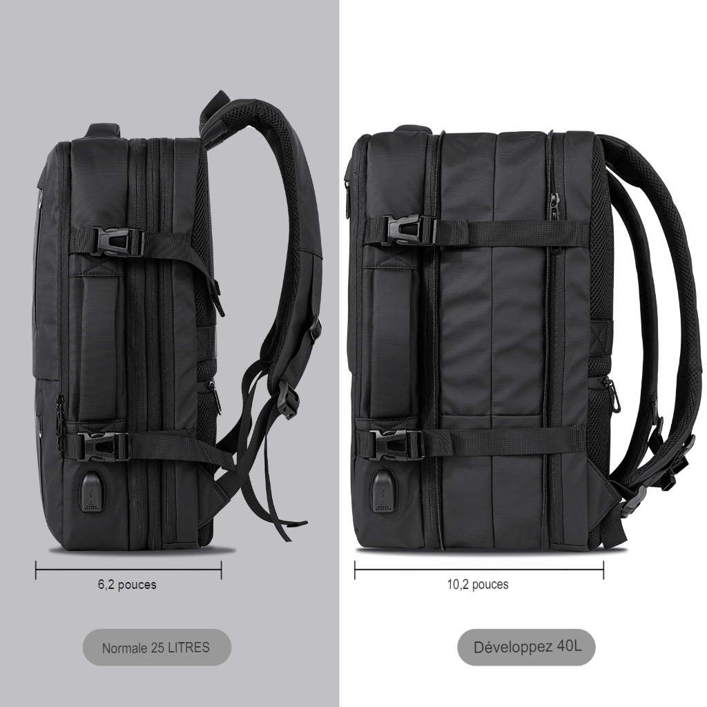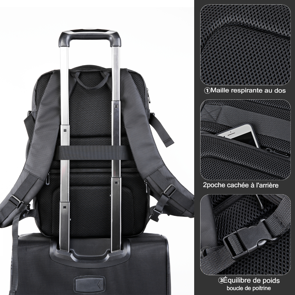 • Sac à dos KINGSLONG 17,3" grande capacité avec port de chargement USB, noir