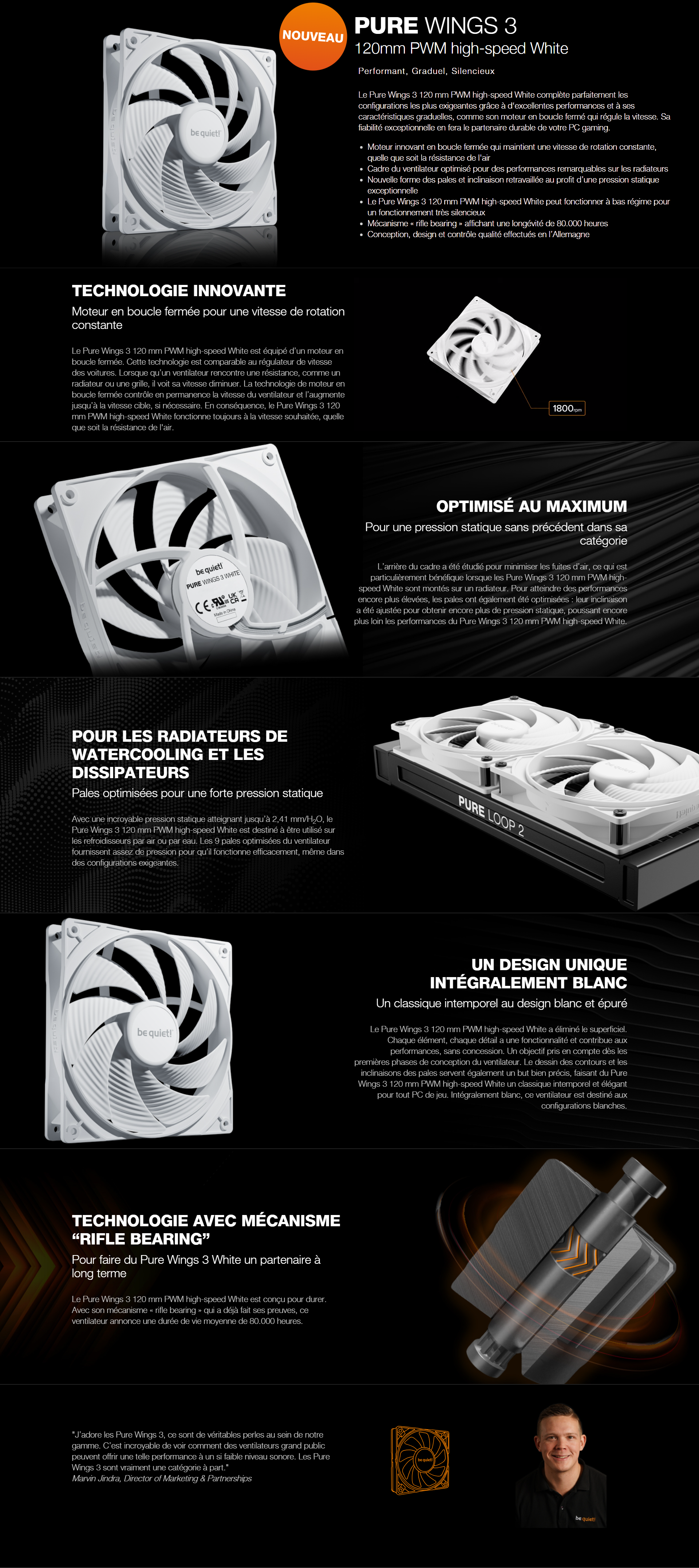 be quiet! PURE WINGS 3 120mm Ventilateur de boîtier PWM haute vitesse, Blanc