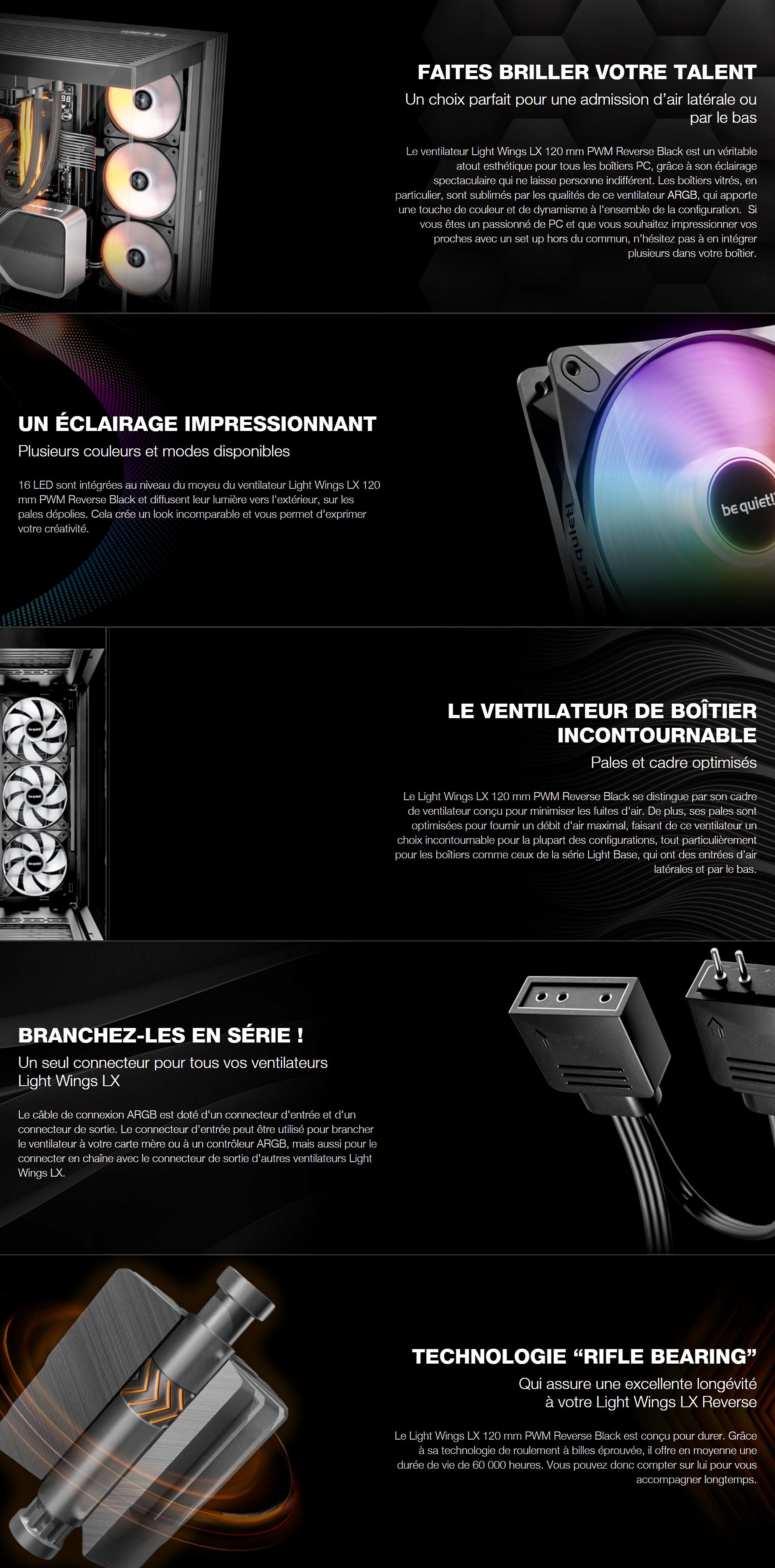 • be quiet! Light Wings LX 120mm PWM inversé noir