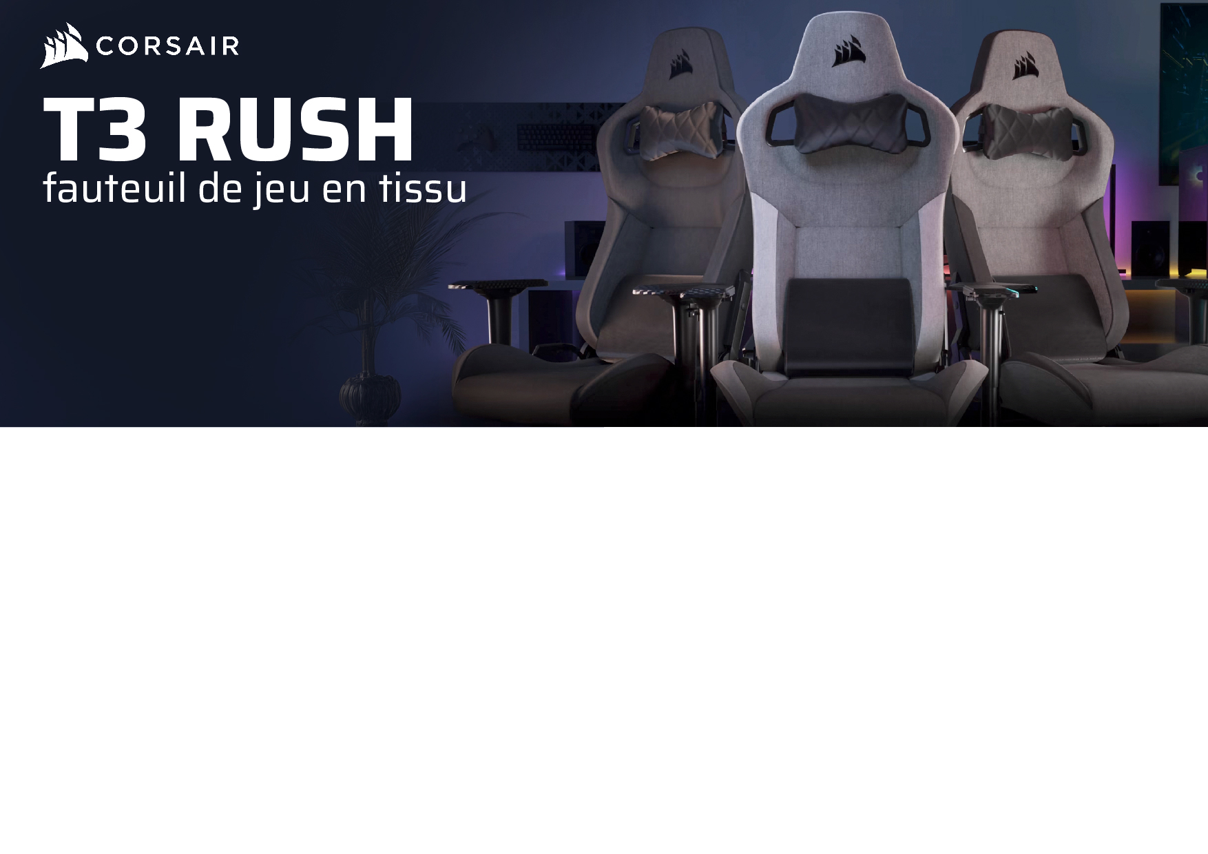 Chaise de jeu en tissu T3 RUSH de CORSAIR (2023) - Gris/anthracite