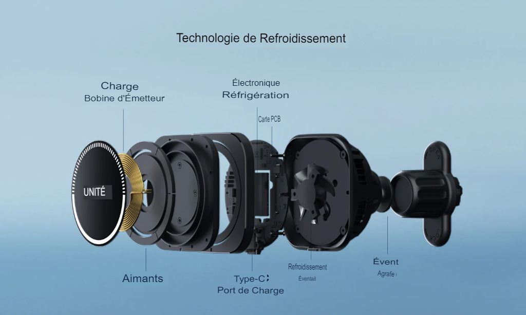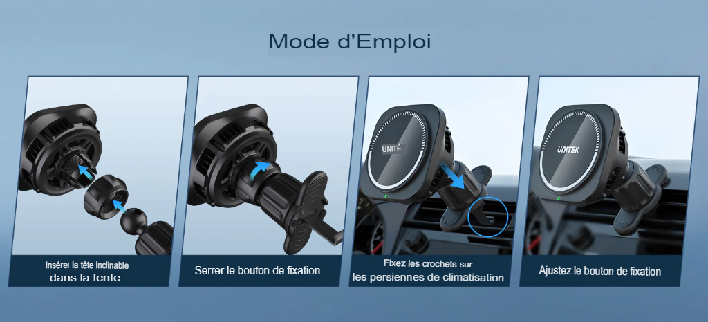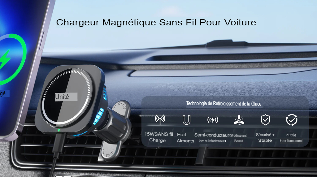 • UNITEK Support de charge sans fil magnétique pour voiture+chargeur 38W