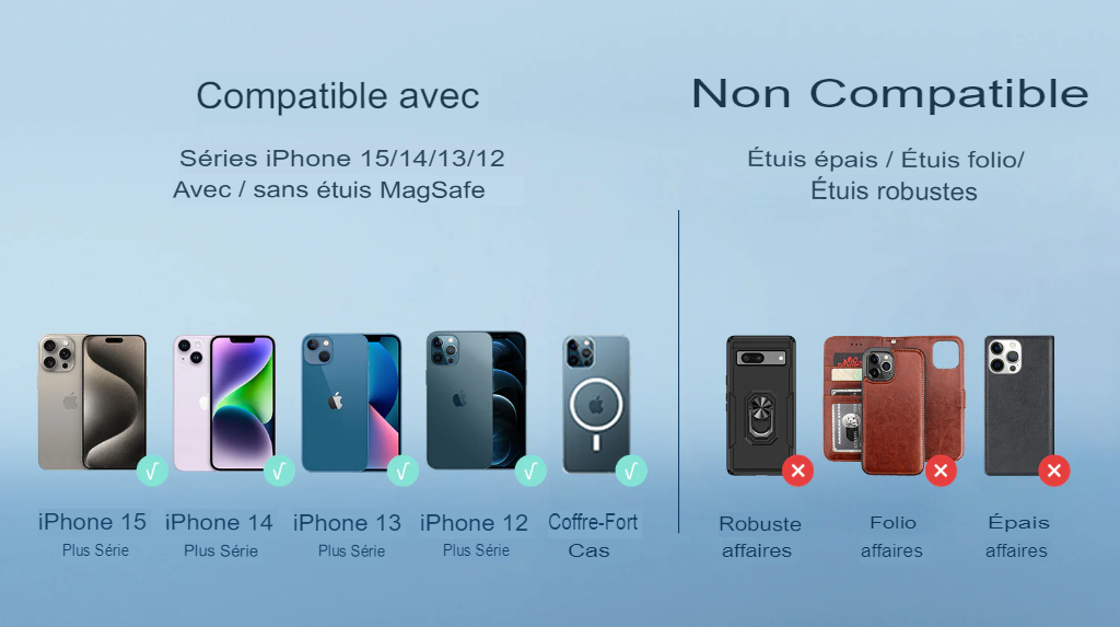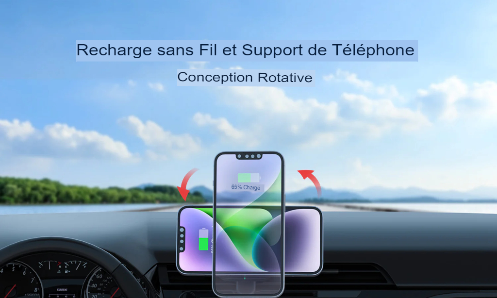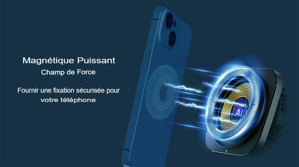 • Aimant Super Puissant : Notre chargeur de voiture sans fil est doté d'un puissant champ magnétique qui maintient le téléphone en place même en conduisant sur des routes inégales. Ce support de voiture a une surface miroir lisse qui protège votre téléphone portable des rayures.