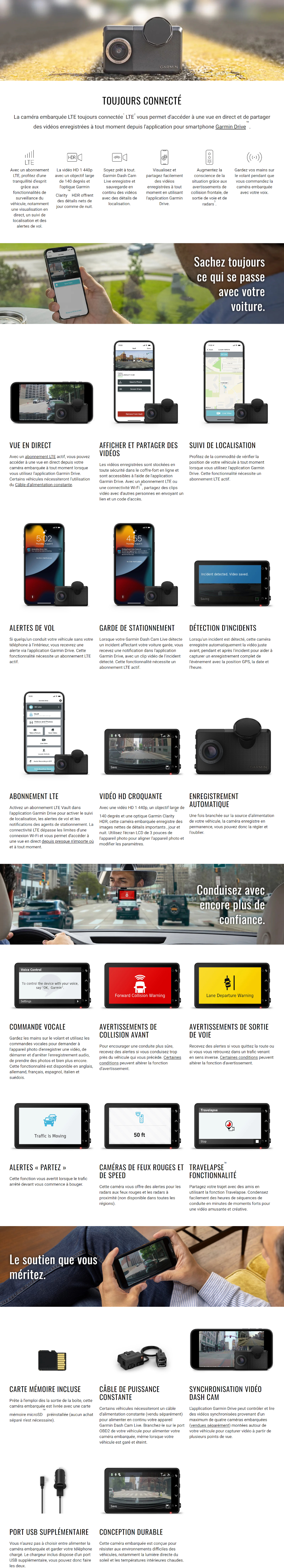 • Garmin Dash Cam™ Live 1440p Caméra embarquée LTE toujours connectée av