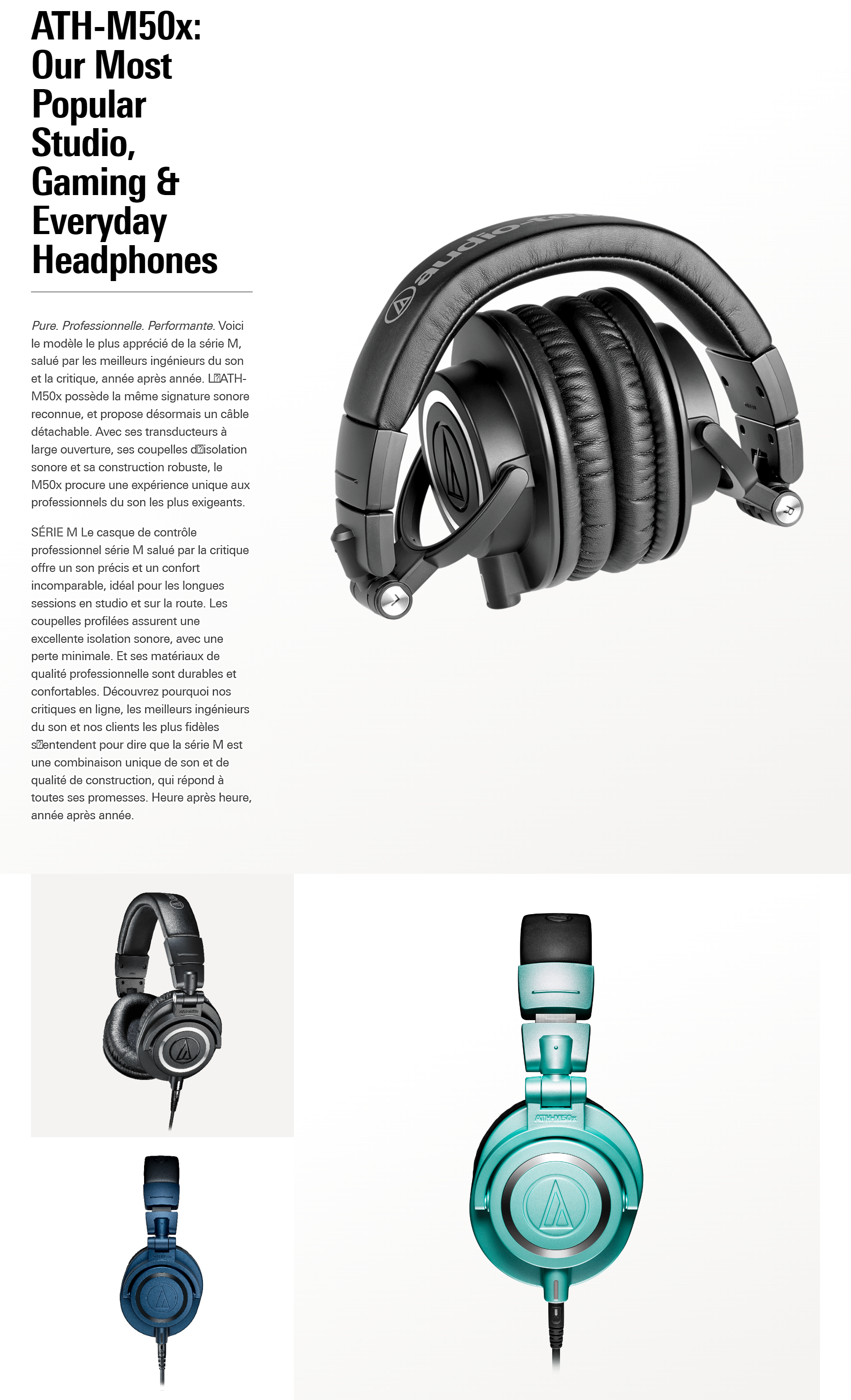 • AUDIO TECHNICA AT-M50x Casque de contrôle professionnel, bleu glacier