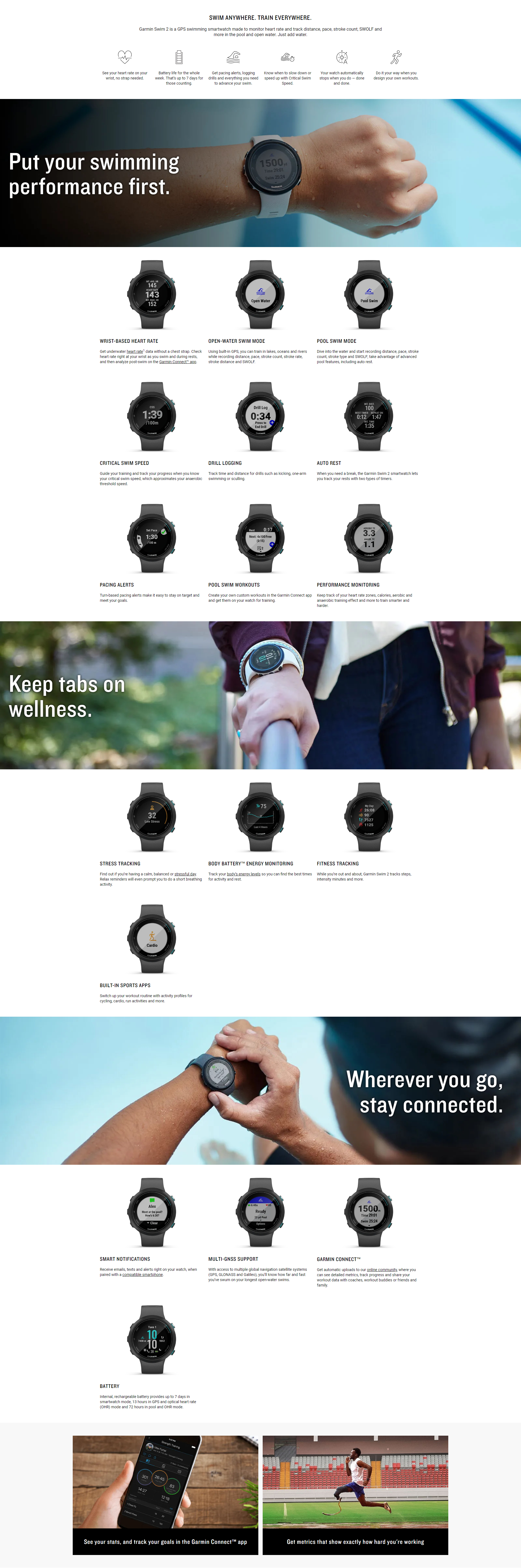 • GARMIN Swim 2 - Montre intelligente de natation - Ardoise 42mm